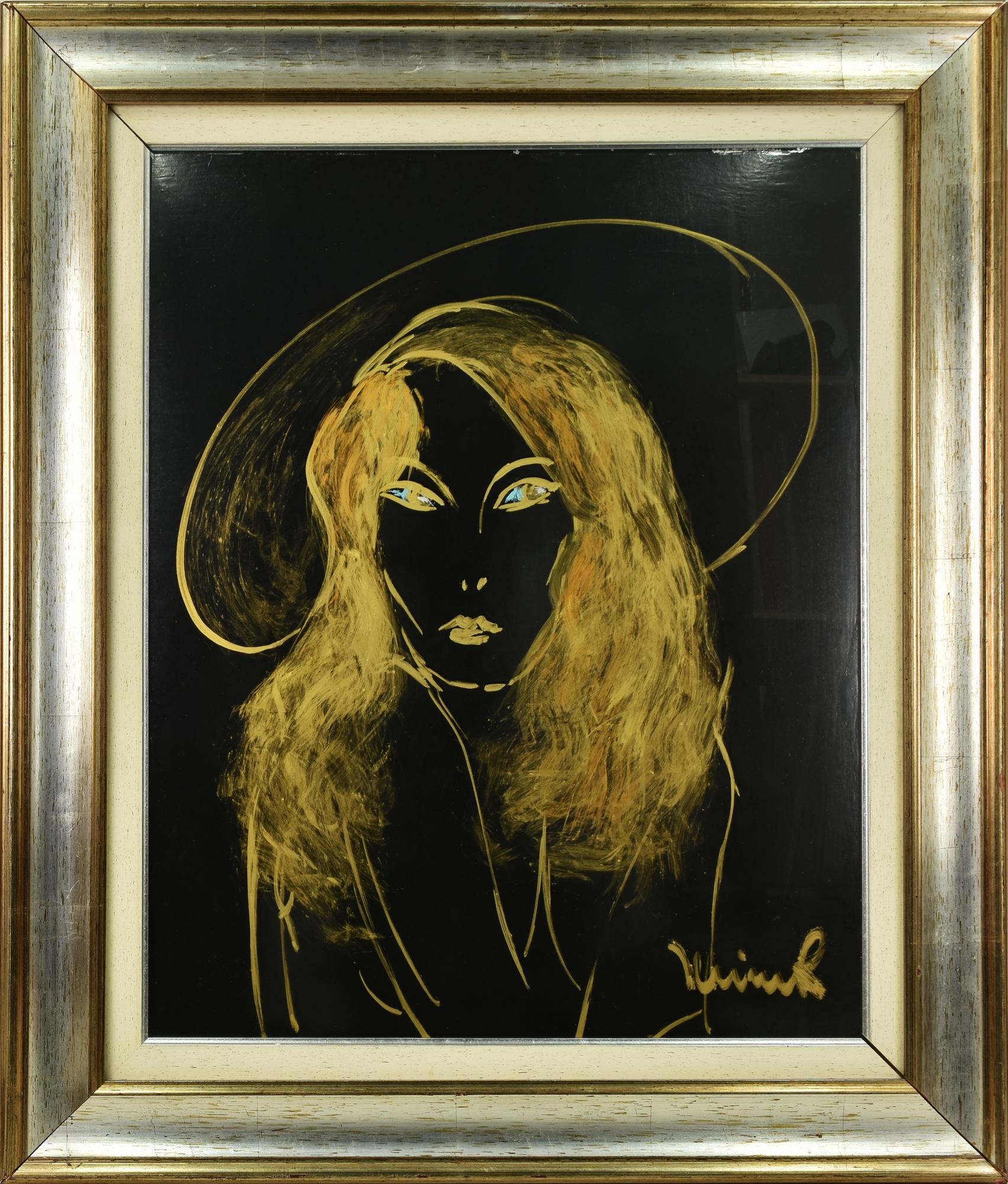 Lotto 496 | Harry Jelinek RITRATTO SU SFONDO NERO tecnica mista su faesite, cm 71x57...