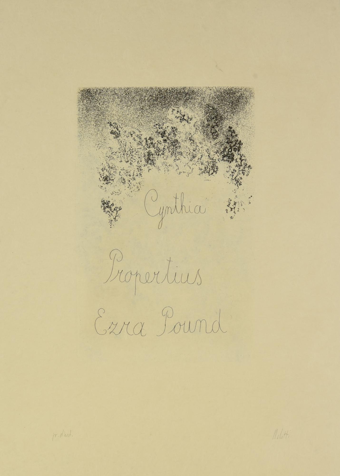 Esemplare non completo delle incisioni realizzate per il volume di Ezra Pound Homage to Sextus Propertius, del 1976, acura di Luigi Majno. Milano, Tipografia Stefanoni di Lecco per M'Arte Edizioni.