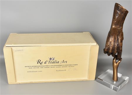 scultura in bronzo realizzata con fusione a cera persa e base di plexiglass, cm 40x13,5; es. 243/250