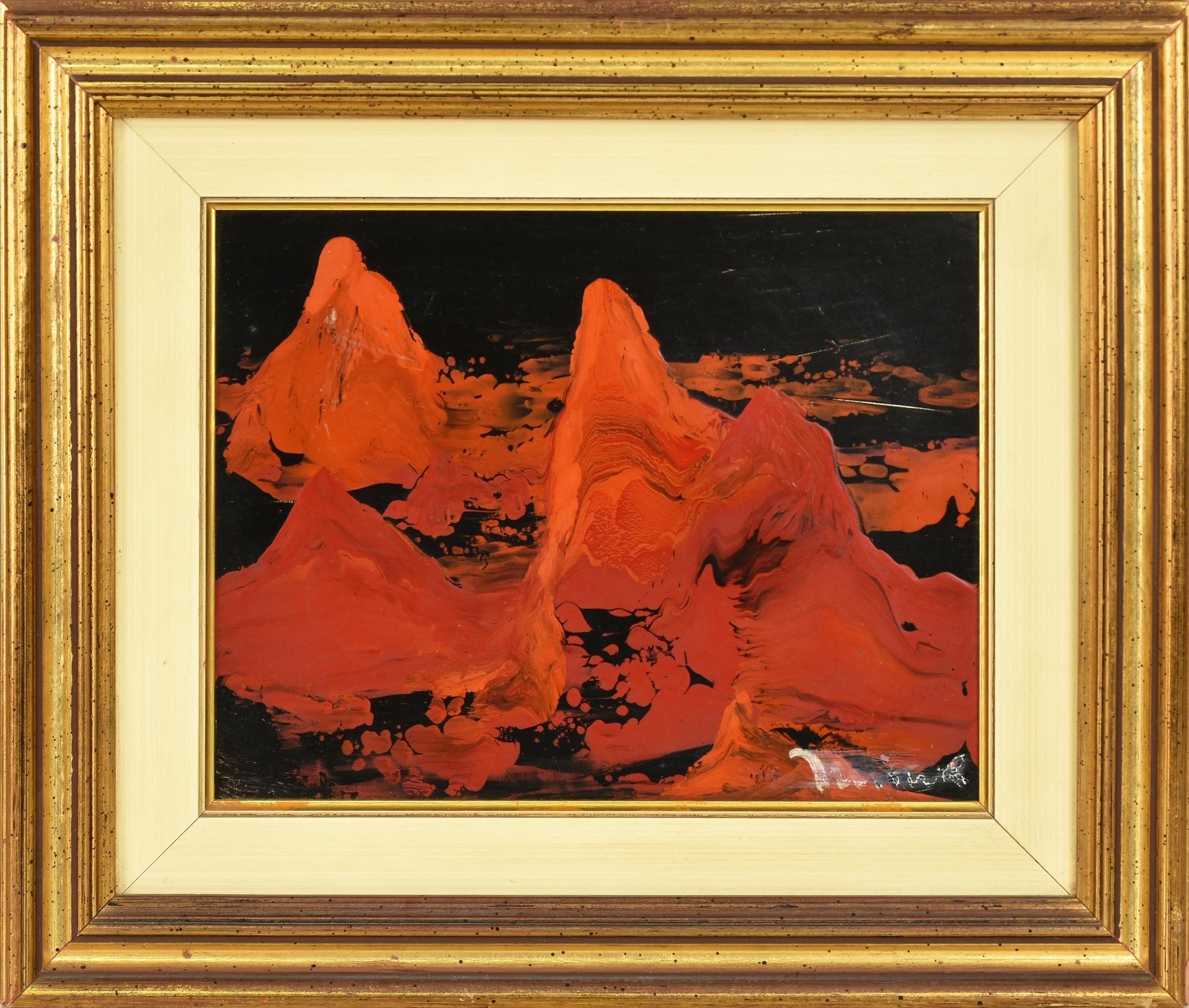 Harry Jelinek PAESAGGIO IN ROSSO tecnica mista su tavola, cm 20x27 firma sul...
