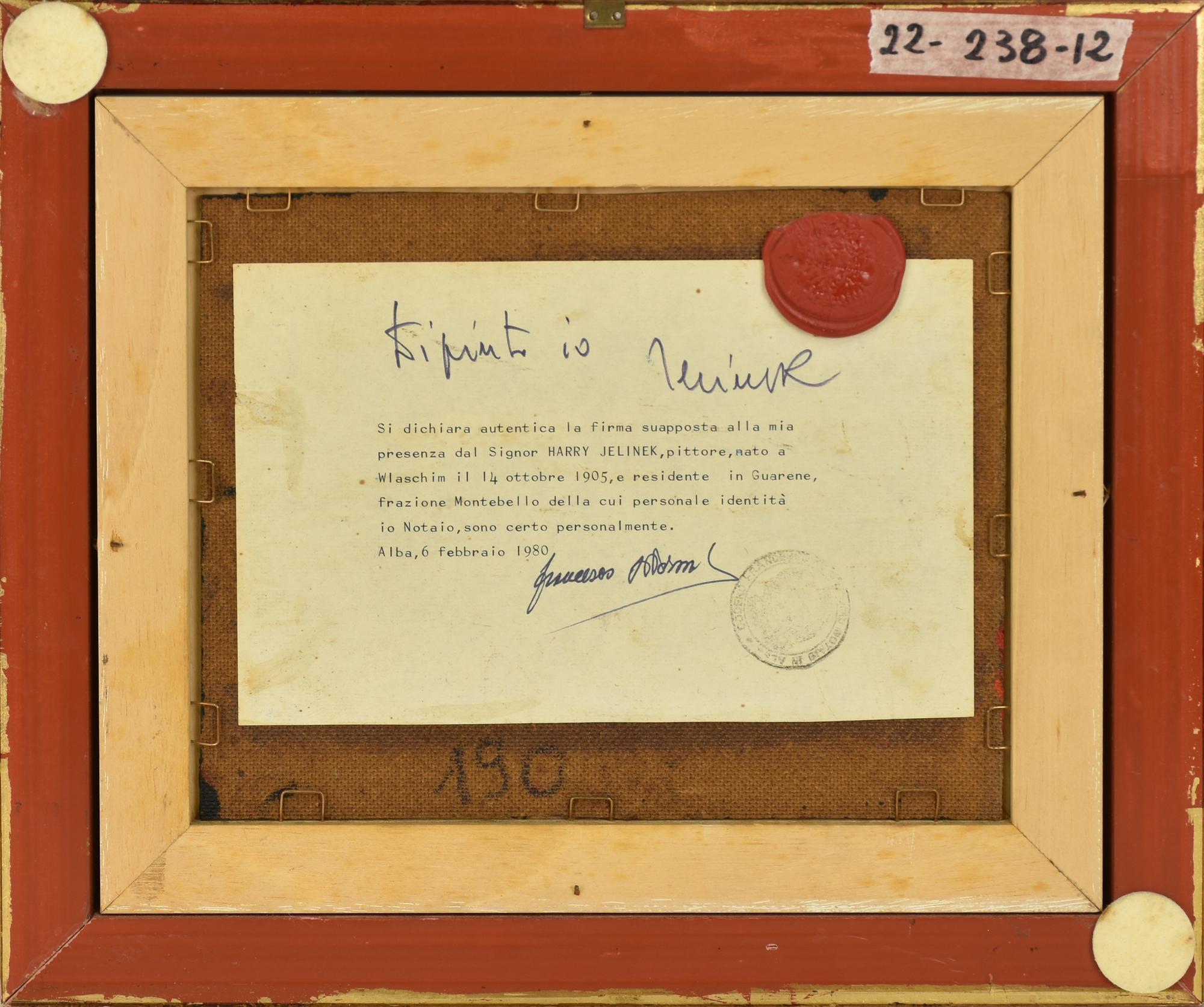 sul retro: etichetta d'autenticita' dell'autore e data