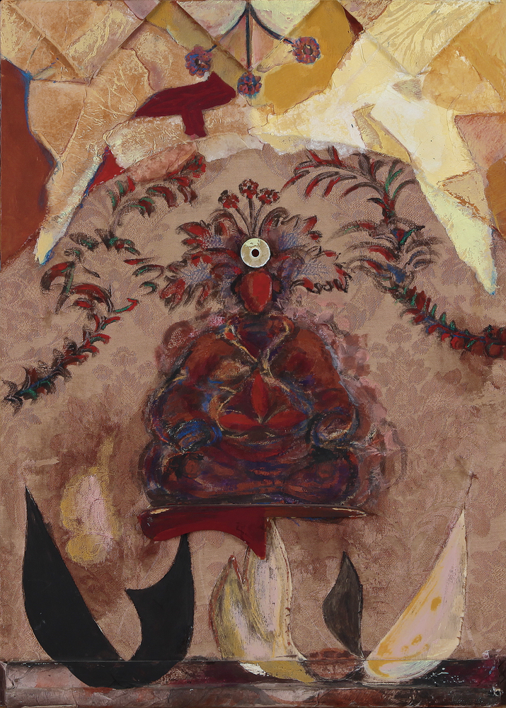 BRUNO CECCOBELLI Montecastello Vibio (Pg) 02/09/1952 Rosso colmo, 2000 tecnica mista e applicazioni su legno cm. 54x39x6,5; firma, titolo e anno al retro, dichiarazione d'autenticità dell'artista su foto, opera senza cornice.