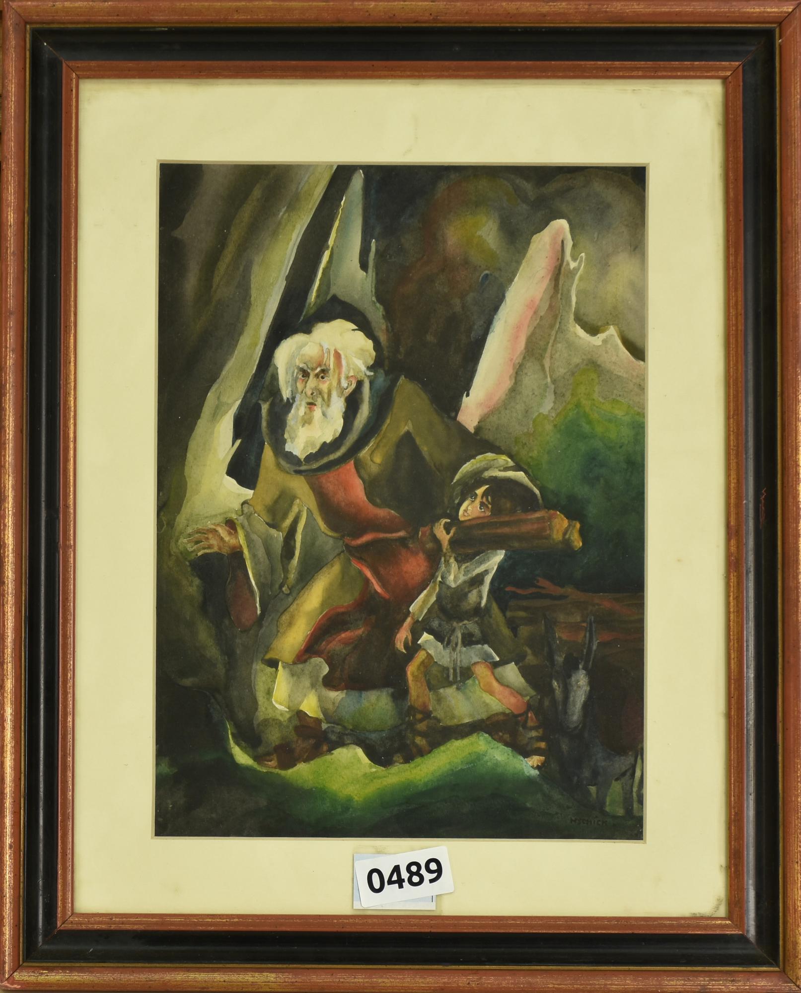 Lotto 757 | Hedi Schick FIGURE CON MULO acquarello su carta, cm 29x20,5 firma