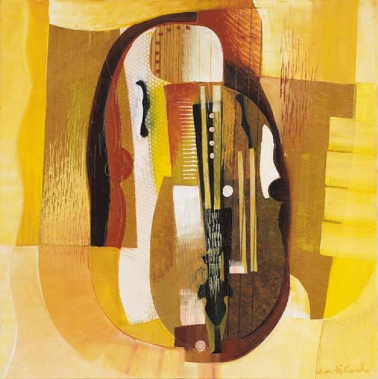 VITTORIOMARIA DI CARLO S. Marco in Lamis (Fg) 1939 Anatomia di uno strumento a corde olio e collage su tela cm. 80x80, firma in basso a destra e al retro, dichiarazione d'autenticità e archivio dell'artista su foto, pubblicato su "Arte", Editoriale Giorgio Mondadori, luglio 2008, pagina 144.