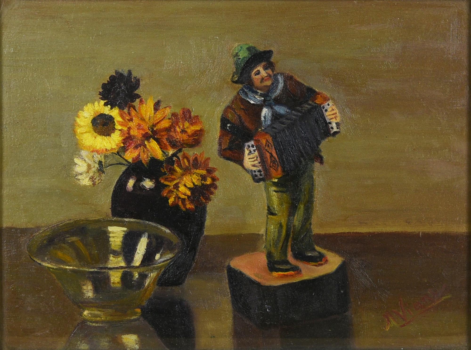Ignoto NATURA MORTA olio su cartone, cm 25x34 firma