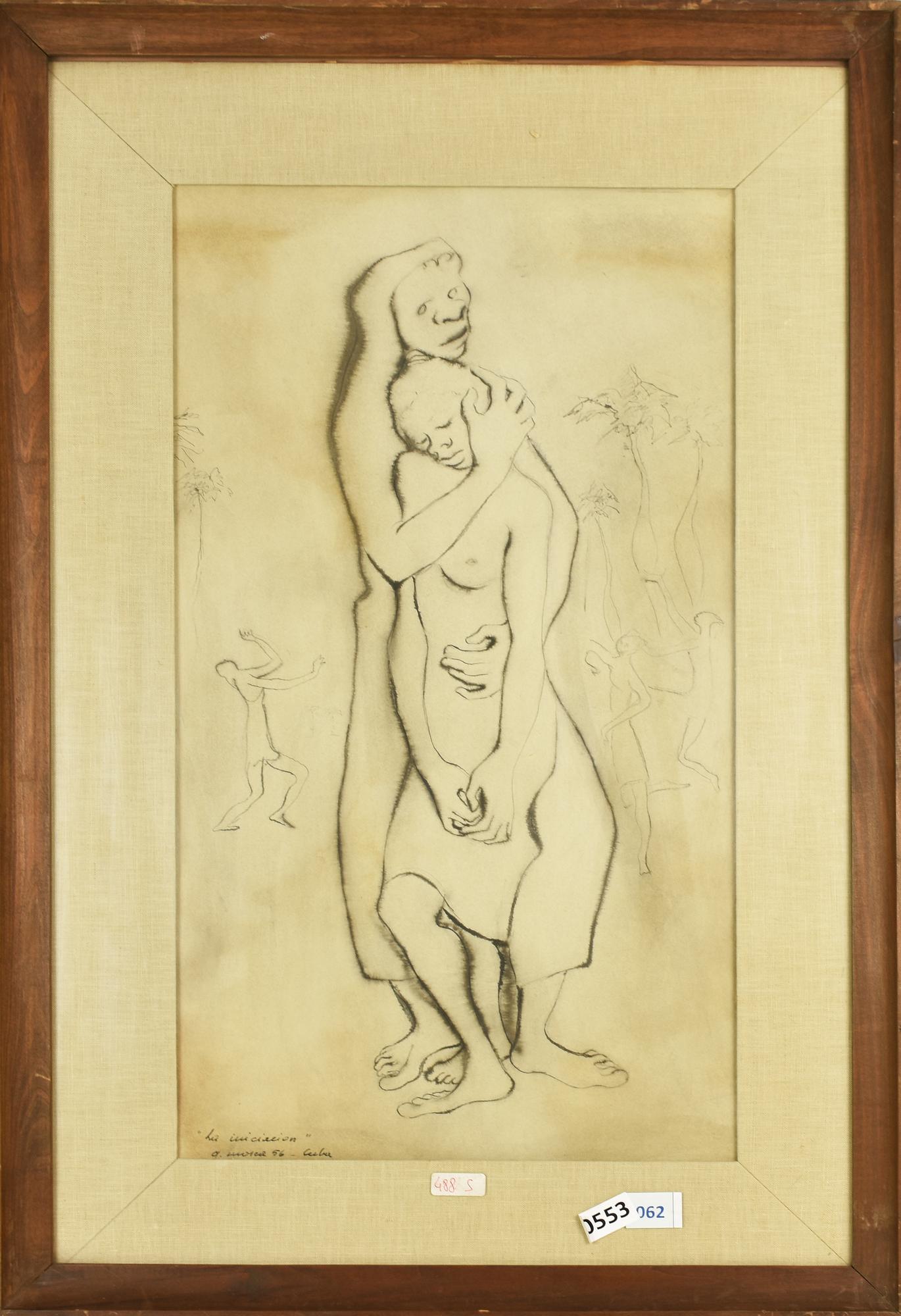 Guido Mosca LA INICIACION pastello su carta, cm 65x35 firma e data eseguito...