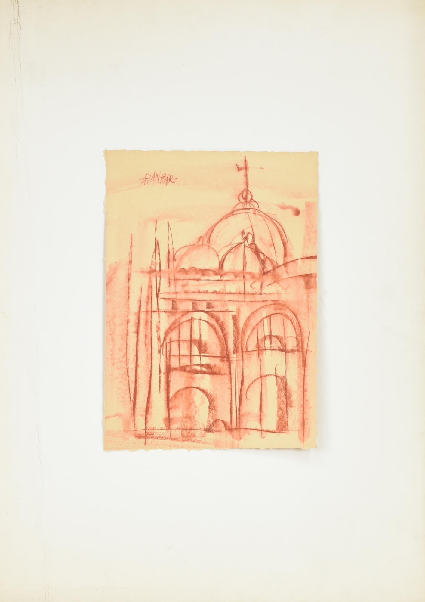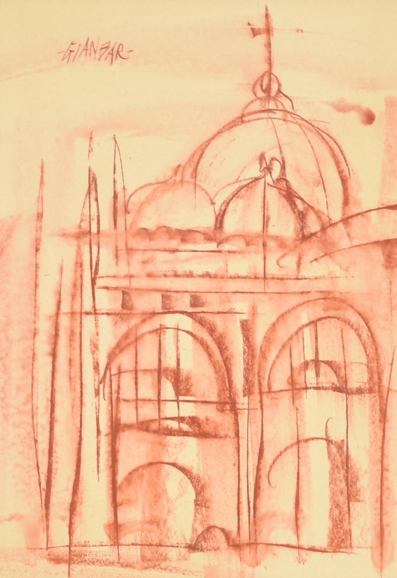 GIANBAR (Gianni Baretta) CUPOLE DI SAN MARCO carboncino su carta applicata su...