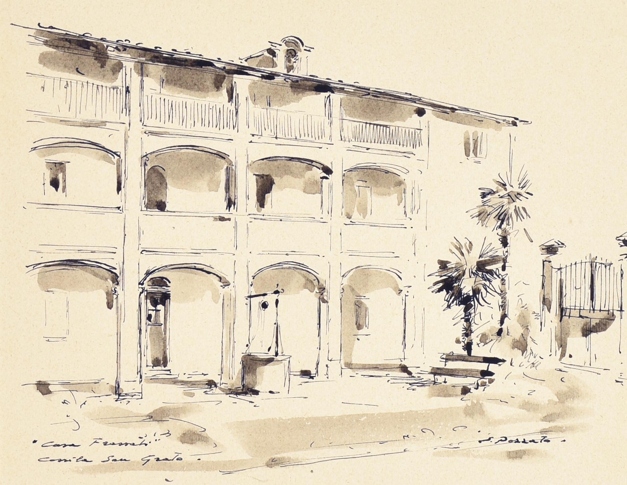 Epifanio Pozzato CASA FRASSATI COSSILA S. GRATO china acquarellata su carta,...