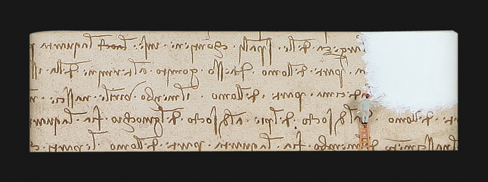 FRANCESCO DE MOLFETTA Milano 1979  Cancellare l'incompreso, 2005 tecnica mista su carta e plastiche cm. 9x30, firma, titolo e anno al retro, dichiarazione d'autenticità dell'artista su foto.