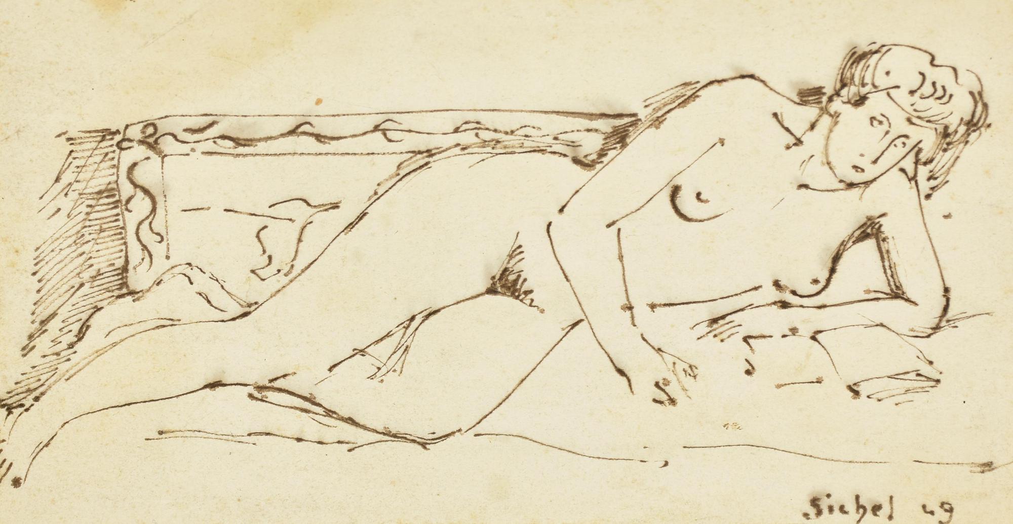 Bruno Sichel NUDO china su carta, cm 12,5x22 firma e data eseguita nel 1949
