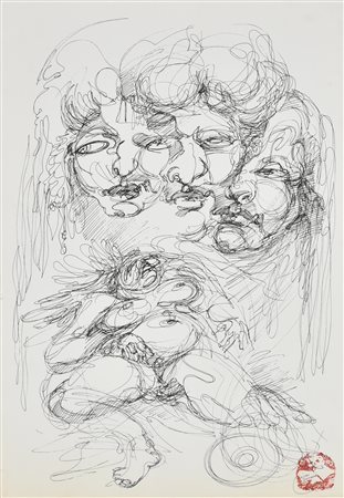 Mario Iannaccone COMPOSIZIONE inchiostro su carta, cm 50x35 firma sul retro:...
