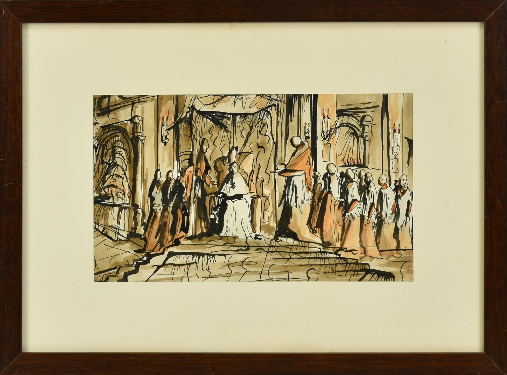 Gianni Alberto Macalli IL PAPA china acquarellata su carta, cm 13x22 sul...