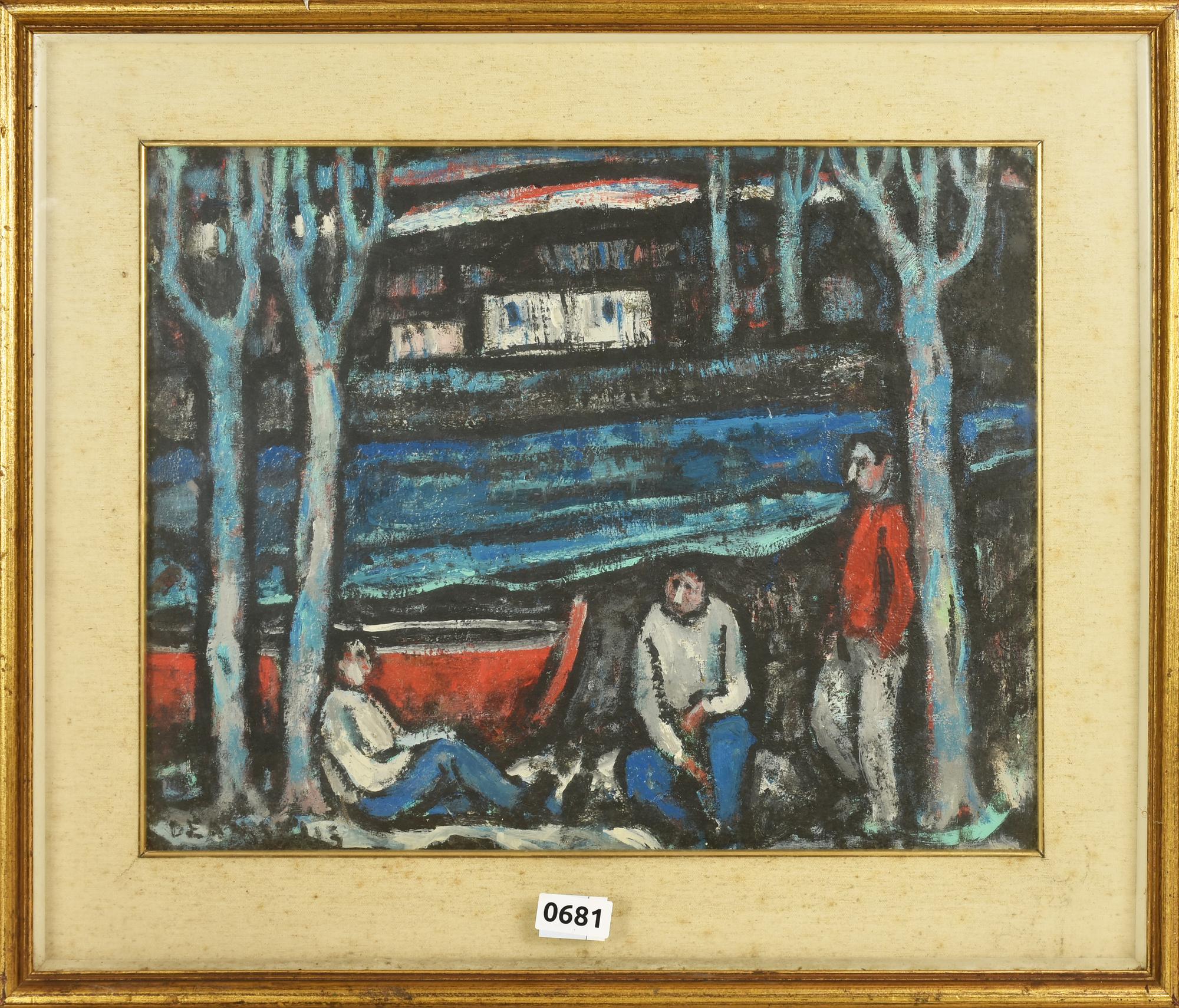 Giuseppe De Angelis TRE FIGURE olio su cartone telato, cm 40x50 firma sul...