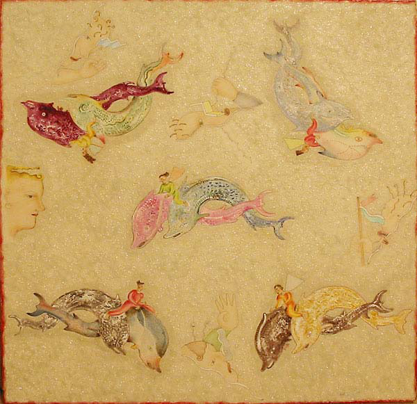 LUCA ALINARI Delfini 2003 Acrilico e resina su Tavola cm 88x88 Autentica...