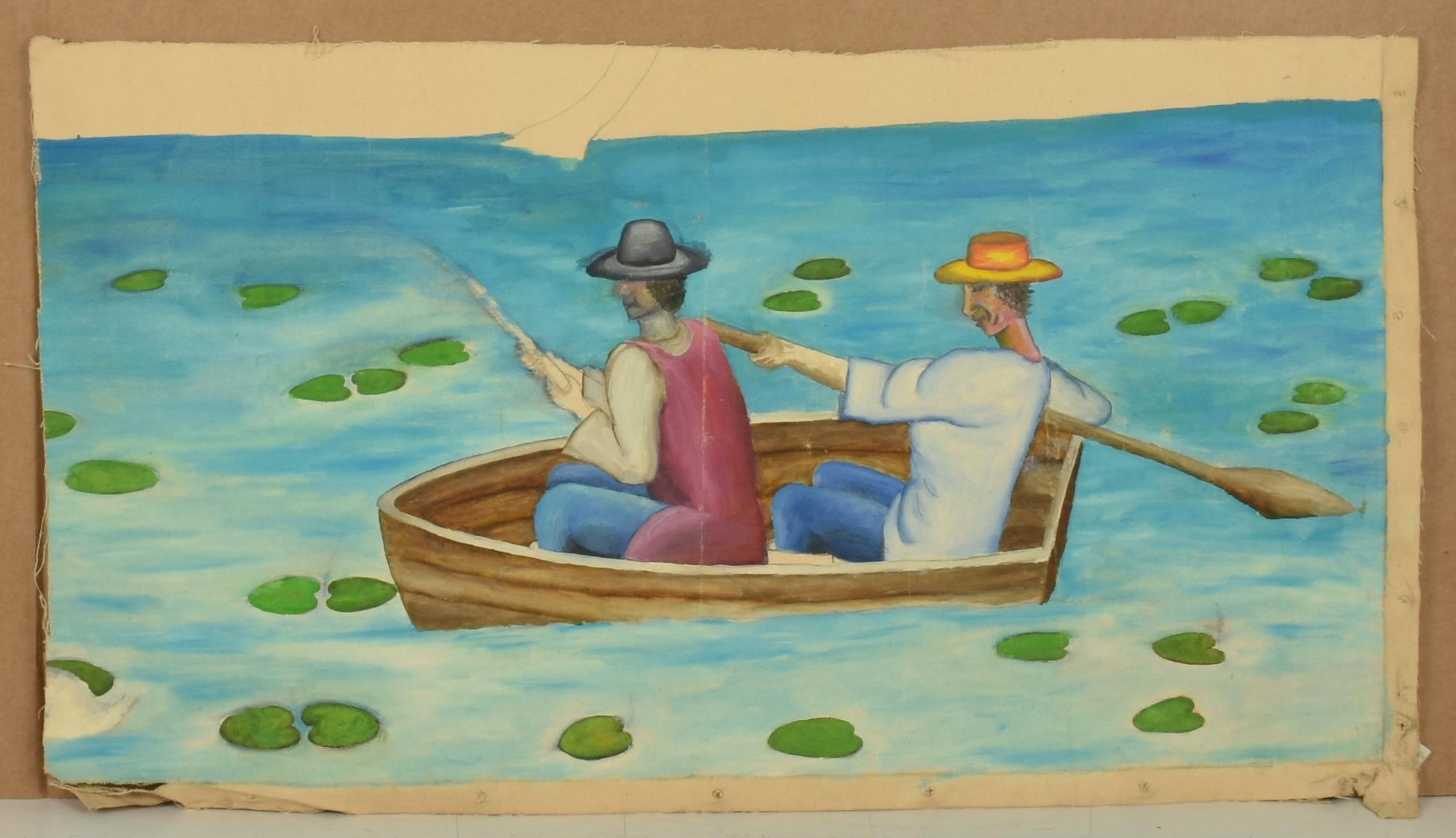 Ignoto IN BARCA olio su tela, cm 34x61 L'opera presenta segni di piegatura...