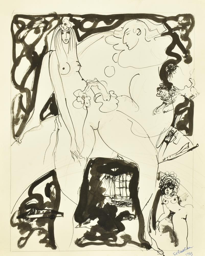 Sebastian LA TENTATION china e lapis su carta, cm 50x40,5 firma e data...