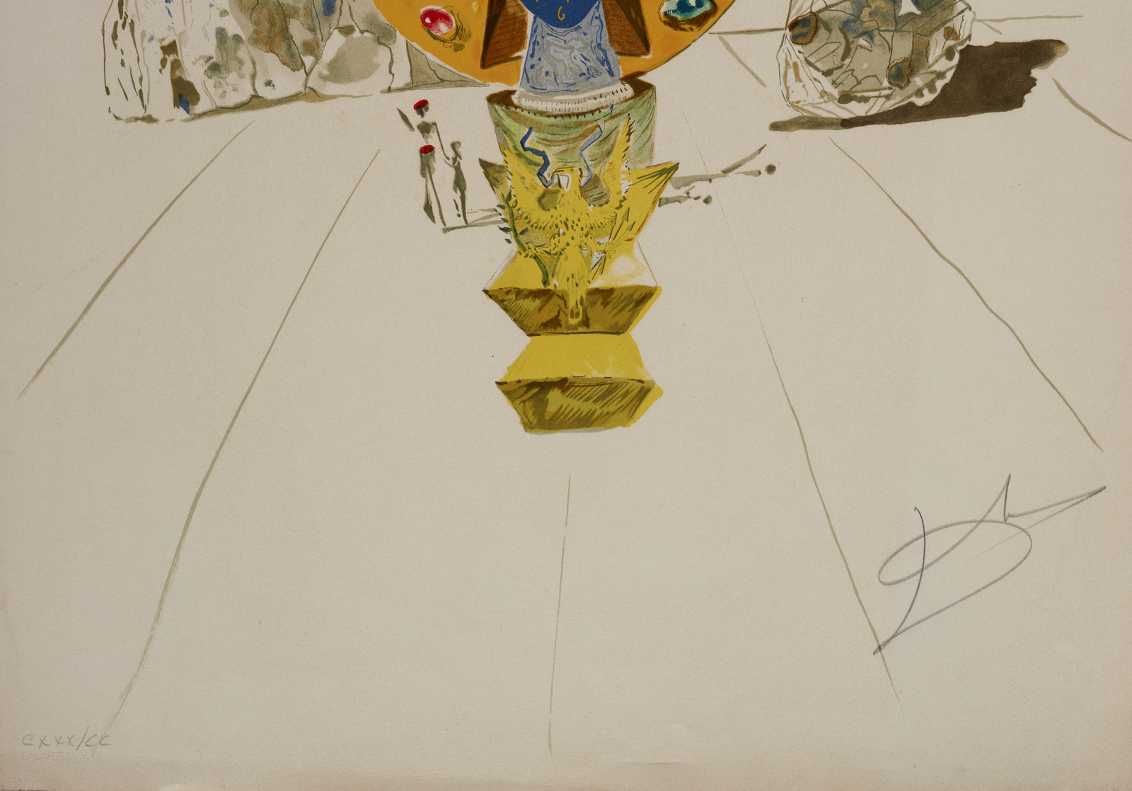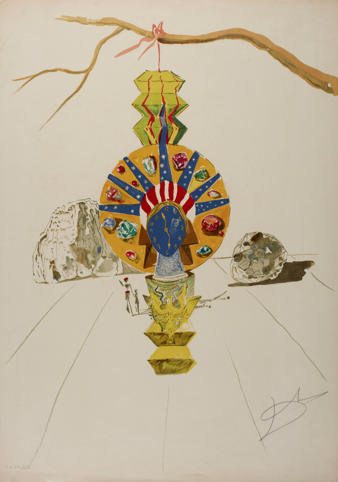 DALI' SALVADOR (1904 - 1989) Dalla cartella Time. American Clock. 1976. Litografia. Cm 53,00 x 76,20. CXXX/CC. Tiratura e firma in basso a matita. Timbro a secco Dalart N.V. con anno in basso a sinistra. Edizione totale: 300 numerati (1 - 300); 250 numerati (J1 - J250) (Japanese Edition); 200 Numeri romani (I - CC) (South American Edition); 125 numerati (G1 - G125) (German Edition) + Ap +ea. Pubblicazione: Catalogue raisonne, Field 76-1 B, p. 178. Lievi difetti.