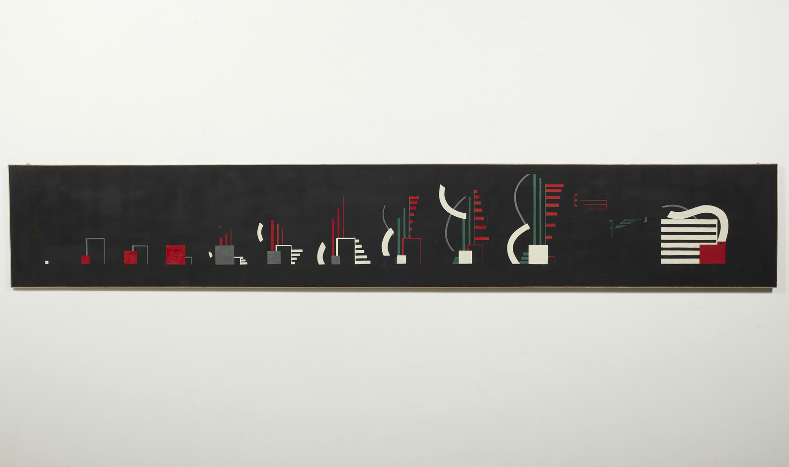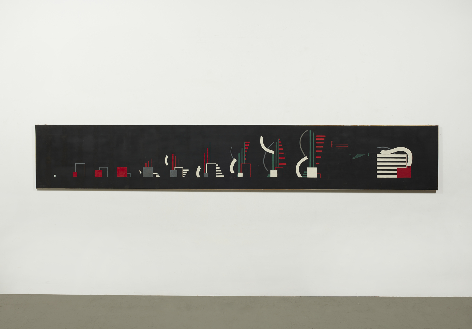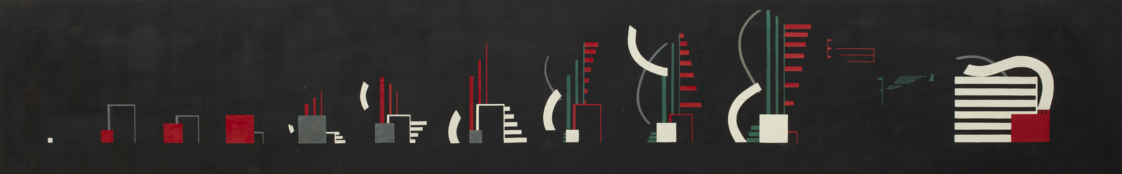 RICHTER HANS (1888 - 1976) Rhythmus. Serigrafia su tela. Cm 410,70 x 65,30. Firma e anno in basso a sinistra. 1923-1965. Edizione totale: 25 esemplari. Opera estrapolata dai soui primi film sperimentali "Rhythm 21" e "Rhythm 23" dove rappresentava le forme astratte in un movimento ritmico. Lievi difetti.