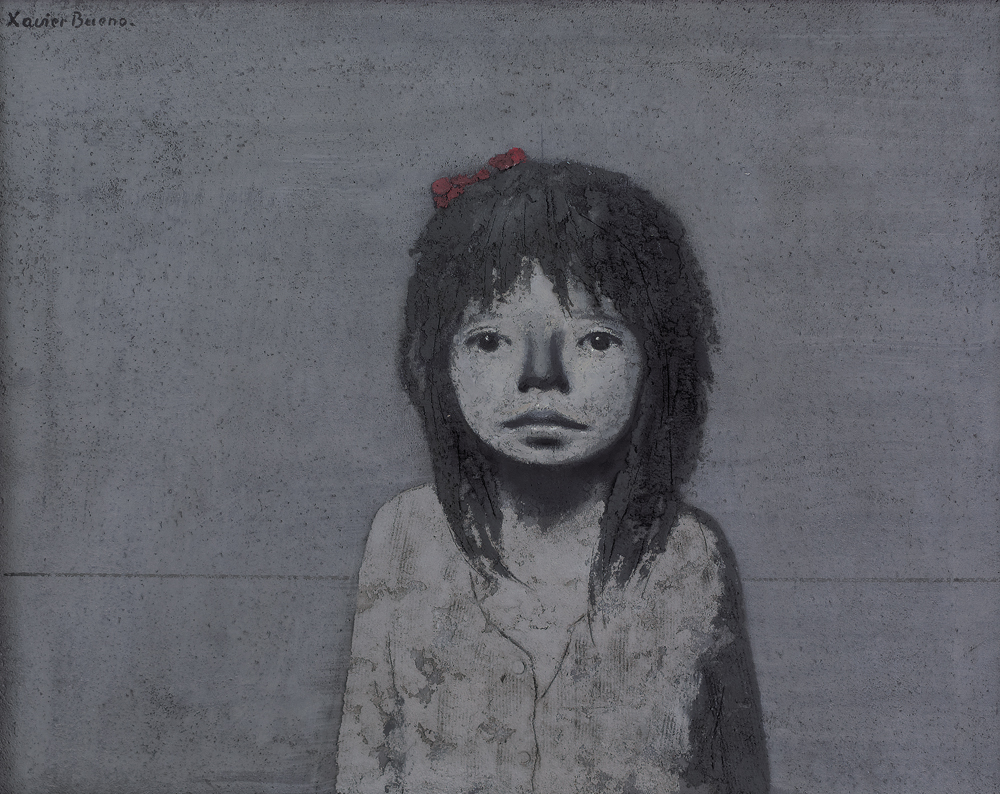 XAVIER BUENO Vera De Bidasoa (Spagna) 1915 - Fiesole (Fi) 17/07/1979 Bambina, 1972 olio e tecnica mista su tela cm. 40x50, firma in alto a sinistra e al retro, dichiarazione d'autenticità dell'artista e Archivio Xavier Bueno su foto, pubblicato sul "Catalogo Generale delle Opere di Xavier Bueno", primo volume (1936-1979), Editoriale Giorgio Mondadori, pagina 174; Collezione Remo Squillantini (FI).