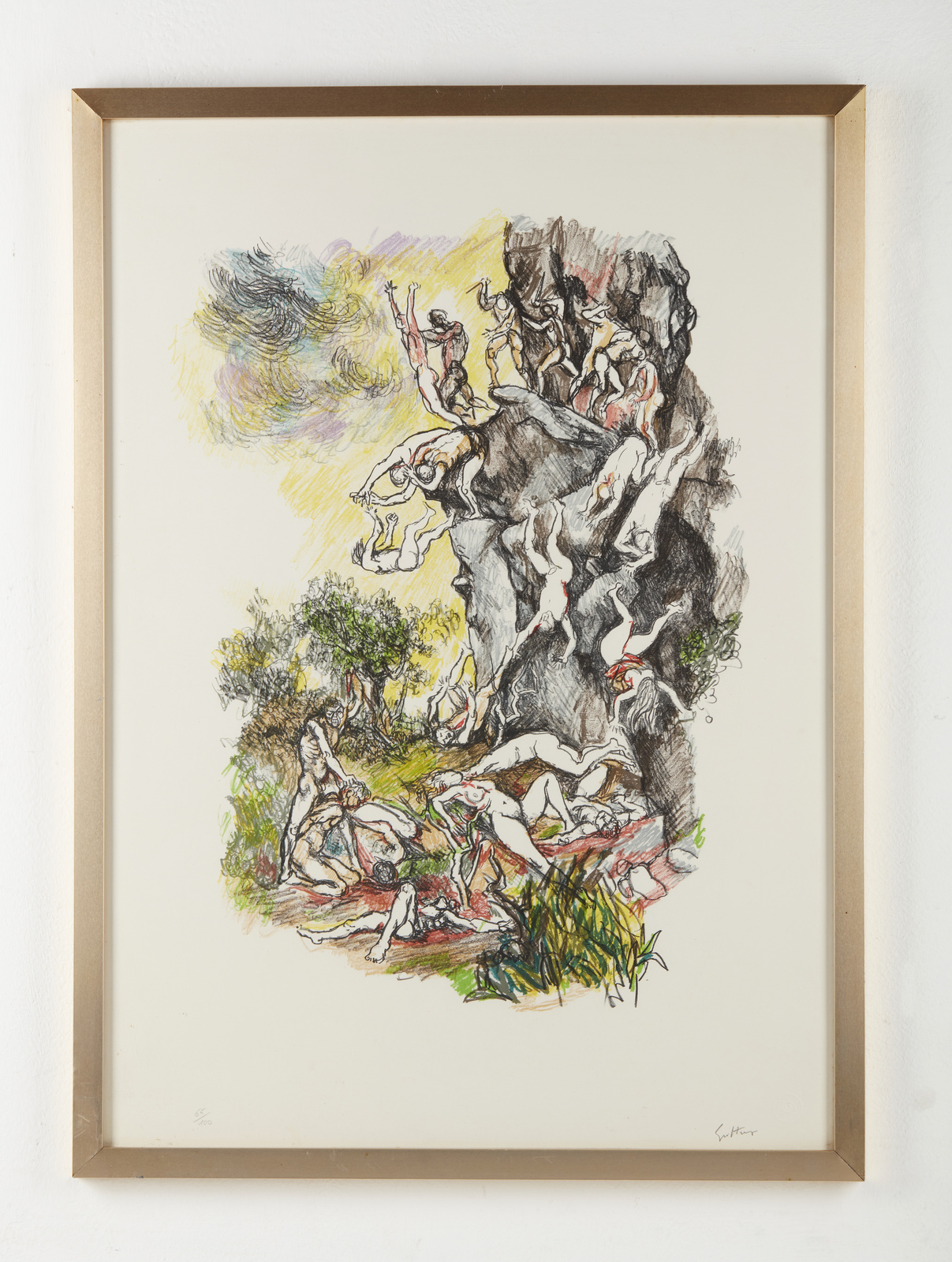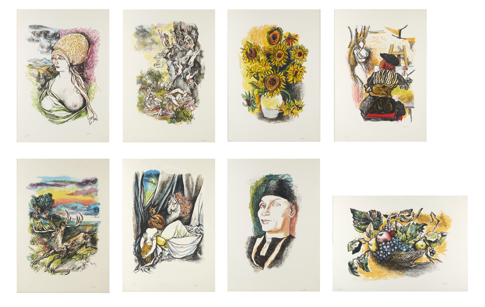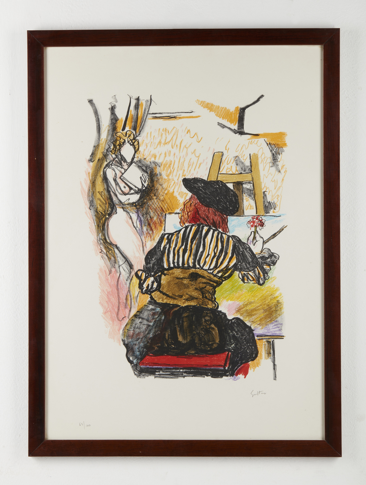 GUTTUSO RENATO (1912 - 1987) Lotto composto da n.8 fogli. Colloquio con i Maestri. . Litografia. Cm 70,00 x 50,00. 65/100. Tiratura e firma in basso a matita. Timbro a secco della stamperia d'arte Spirale di Milano in basso a destra. . Cornice presente