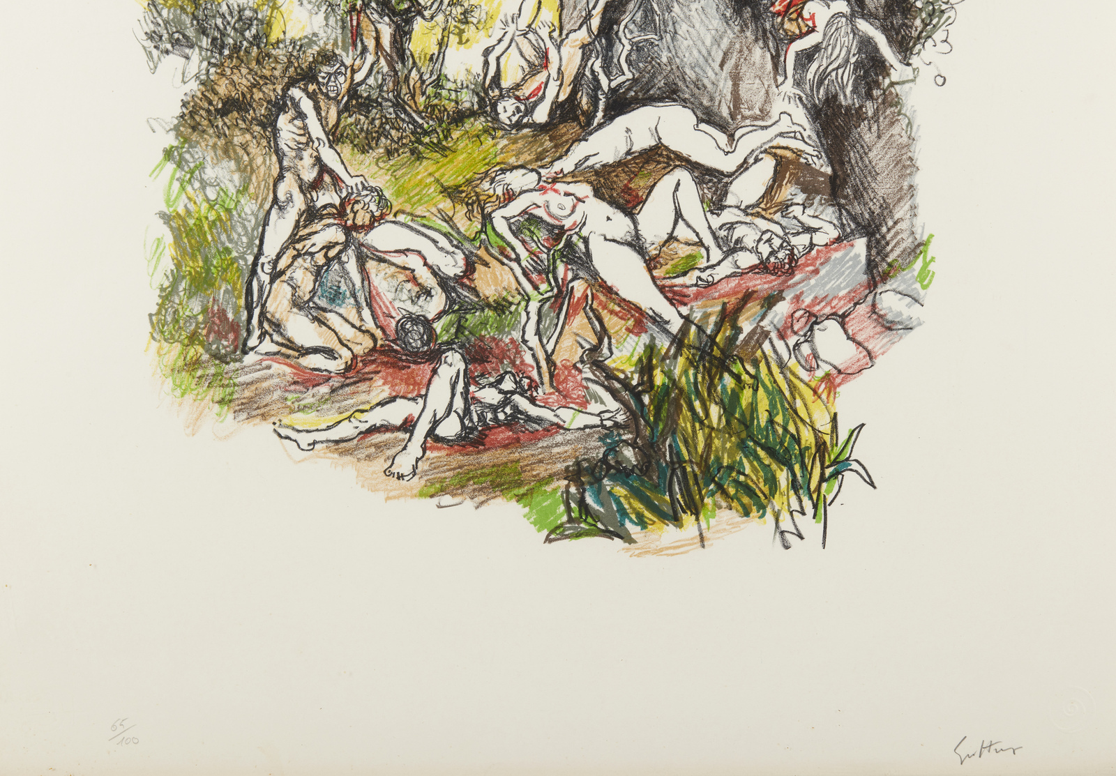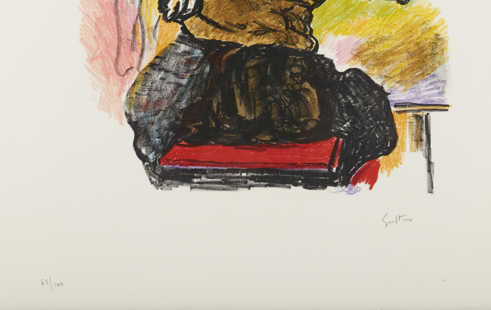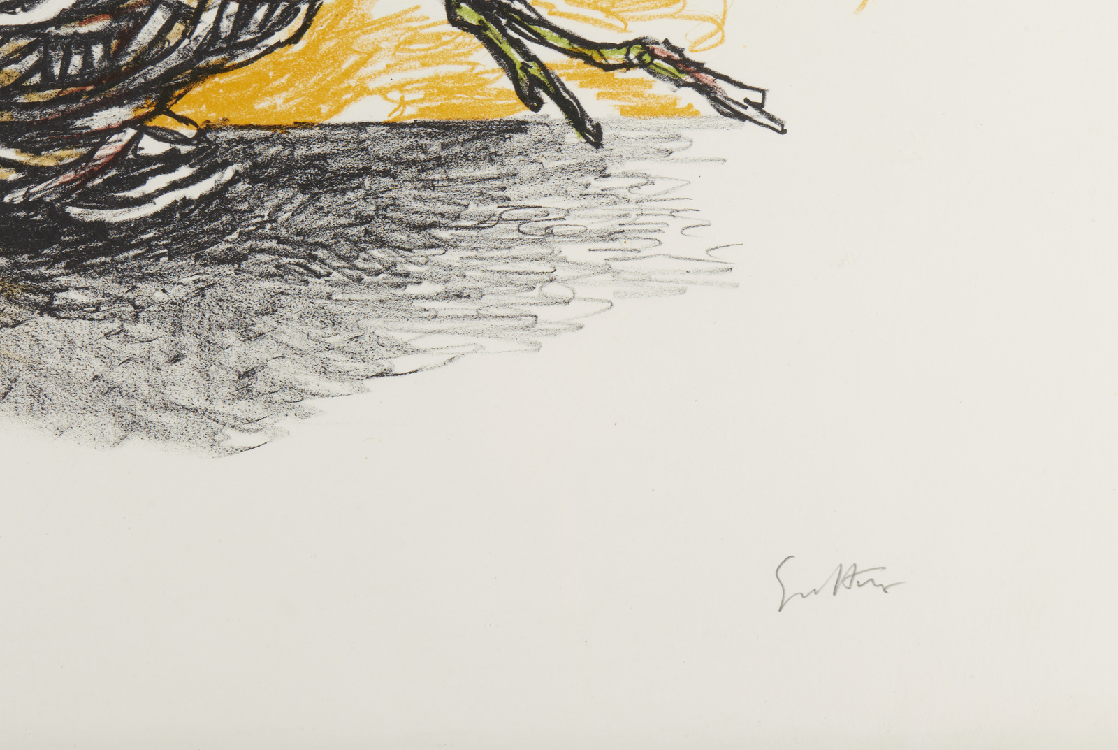 GUTTUSO RENATO (1912 - 1987) Lotto composto da n.8 fogli. Colloquio con i Maestri. . Litografia. Cm 70,00 x 50,00. 65/100. Tiratura e firma in basso a matita. Timbro a secco della stamperia d'arte Spirale di Milano in basso a destra. . Cornice presente