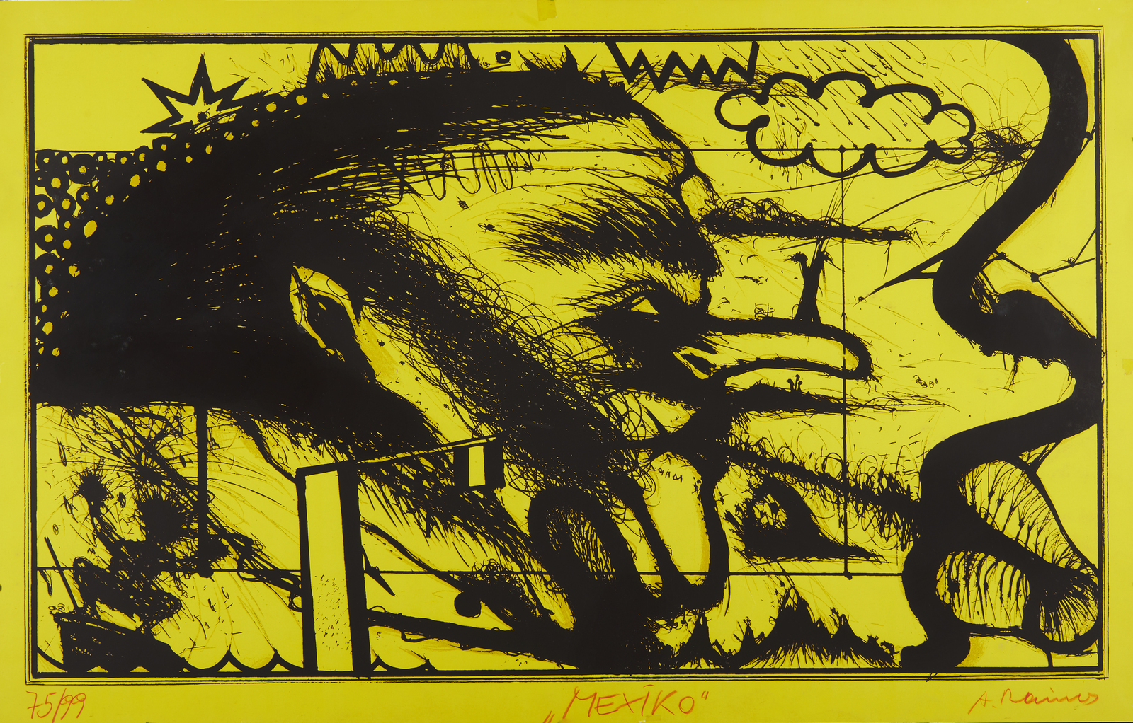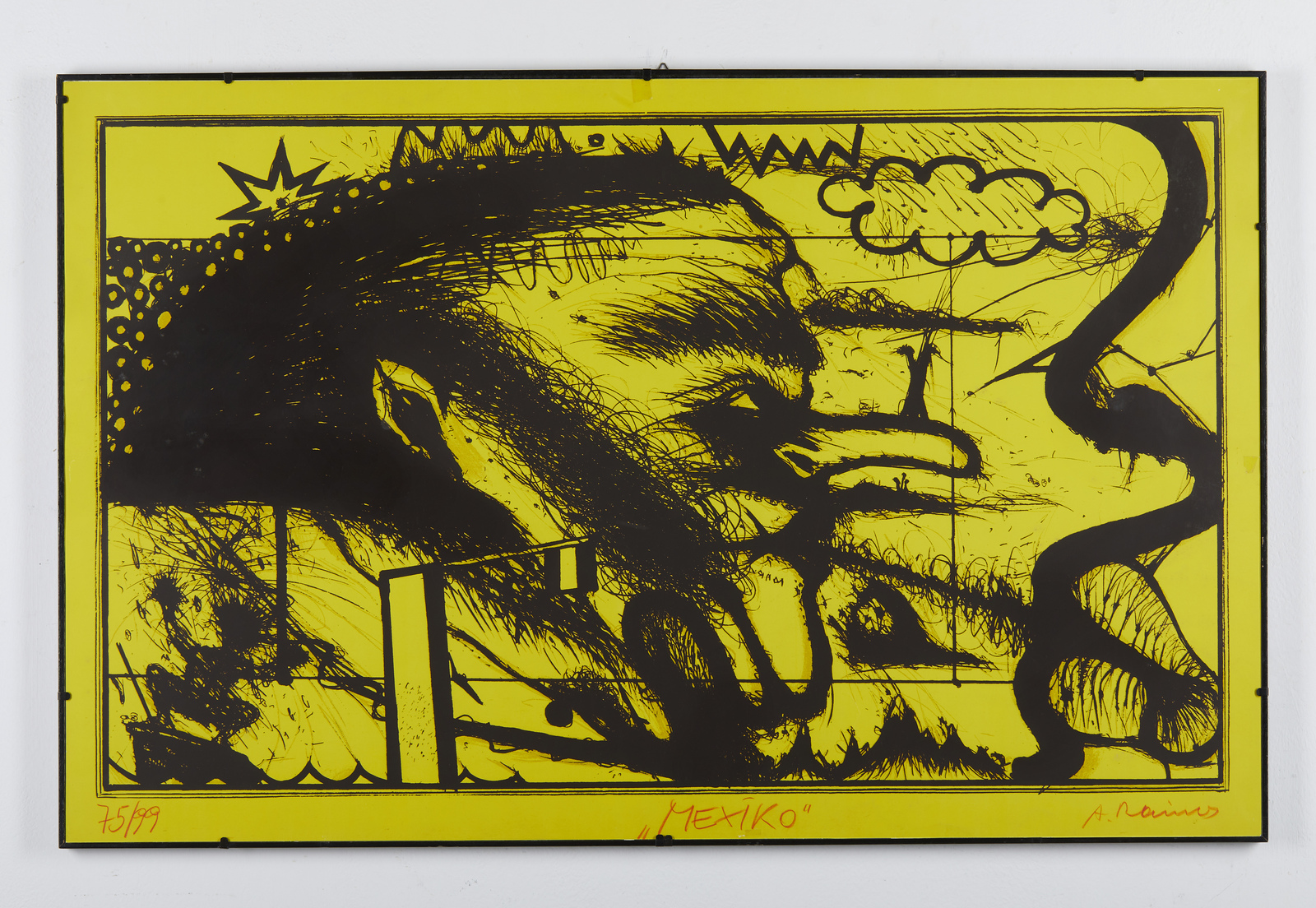 RAINER ARNULF (n. 1929) Mexiko. 1966. Serigrafia. Cm 91,00 x 58,00. 75/99. Tiratura, titolo e firma in basso a matita. Stampatore: Atelier Gerersdorfer, Vienna. Lievi difetti. Cornice presente