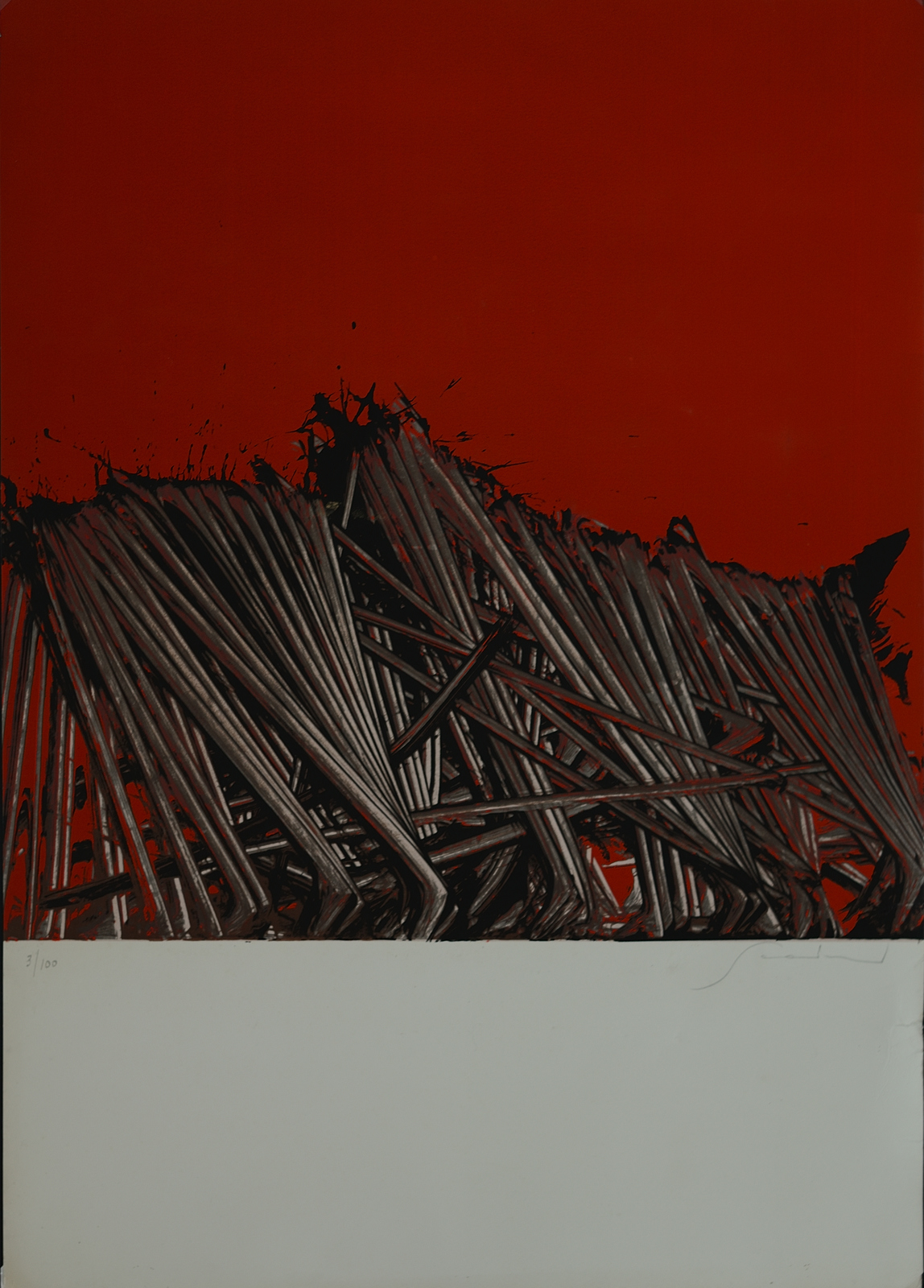 SCANAVINO EMILIO (1922 - 1986) Senza titolo. Serigrafia. Cm 48,50 x 68,00. 3/100. Tiratura e firma a matita in basso. Difetti.
