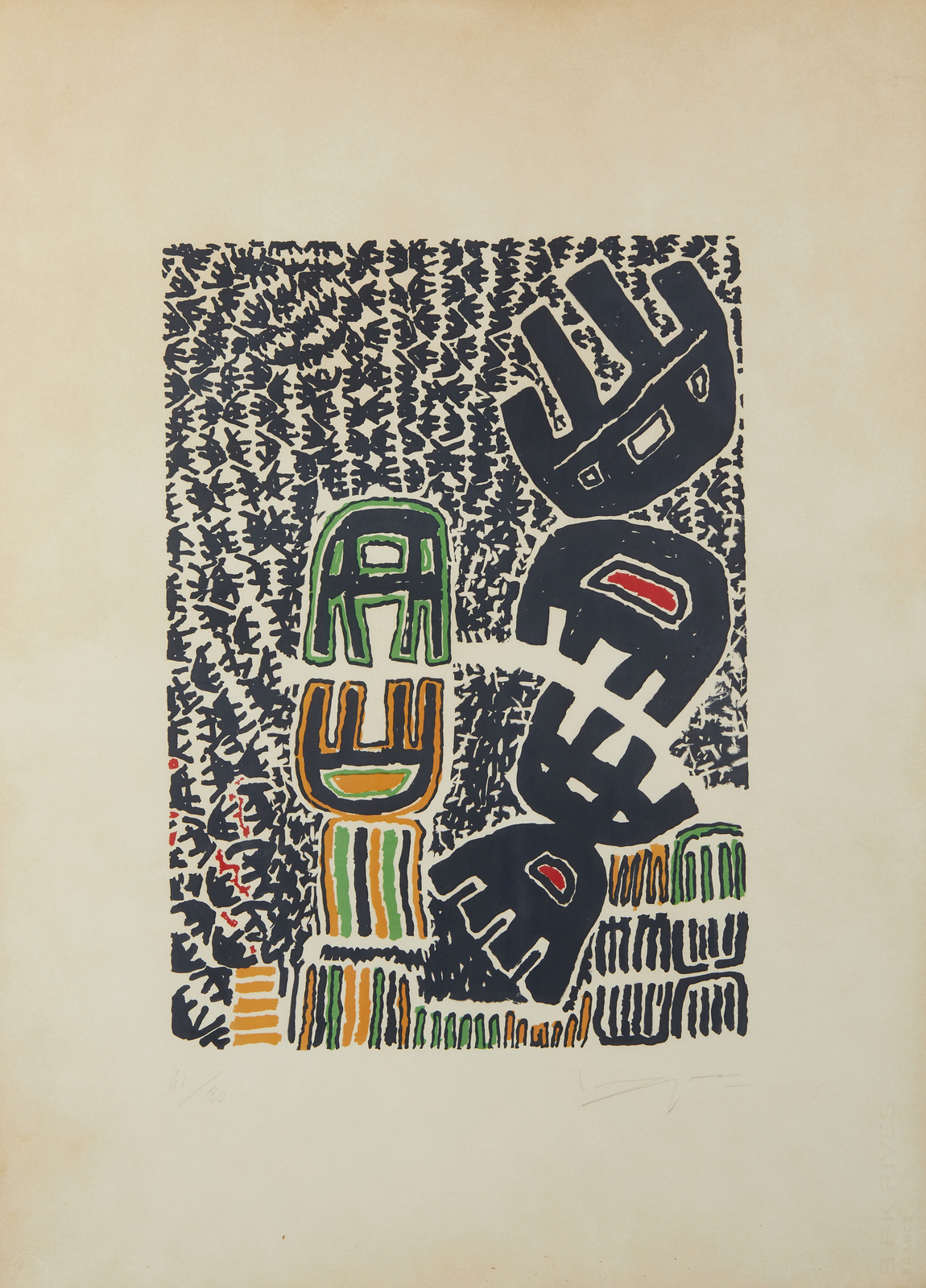 CAPOGROSSI GIUSEPPE (1900 - 1972) Opale n° 9. 1972. Litografia. Cm 55,00 x 75,00. 41/80. Tiratura e firma in basso a matita. Timbro a secco Erker Presse St. Gallen in basso a sinistra. Edizione totale: 80+XV + e.a. Filigrana BFK Rives, France. Pubblicazione: U. von Hase Schmundt, Capogrossi das Graphische Werk, ed. Erker, St. Gallen, 1982, p. 122 n°109. Cornice presente