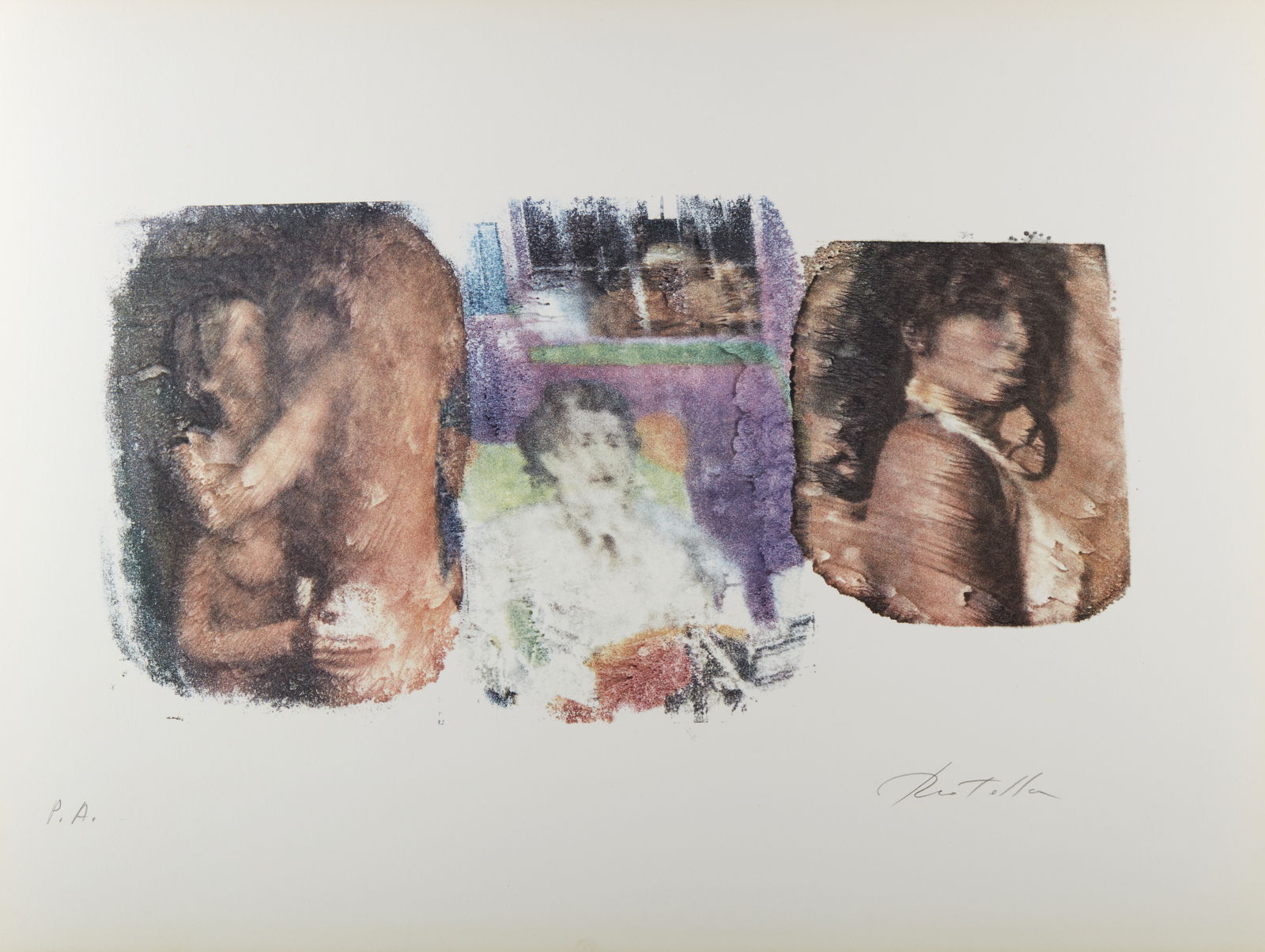 ROTELLA MIMMO (1918 - 2006) Tre figure. Serigrafia. Cm 69,00 x 51,50. P.a. Tiratura e firma in basso a matita. Carta CM Fabriano. Edizione totale: 80 esemplari + p.a. Lievi difetti.