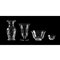 Servizio macedonia in vetro soffiato trasparente e oro composto da una coppa grande e 6 coppette. Due vasi in vetro trasparente.