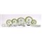 Servizio piatti in porcellana bianca modello “Patio” con bordo a canestro verde e blu decoro centrale con cesto di fiori e foglie nei toni verde e blu, composto da 67 pezzi così suddivisi: 24 piatti piani, 12 piatti fondi, 12 piatti frutta, una zuppiera, un’insalatiera, un piatto da portata ovale, una pirofila ovale, 2 raviere, una salsiera, 12 tazze caffè con piattino.