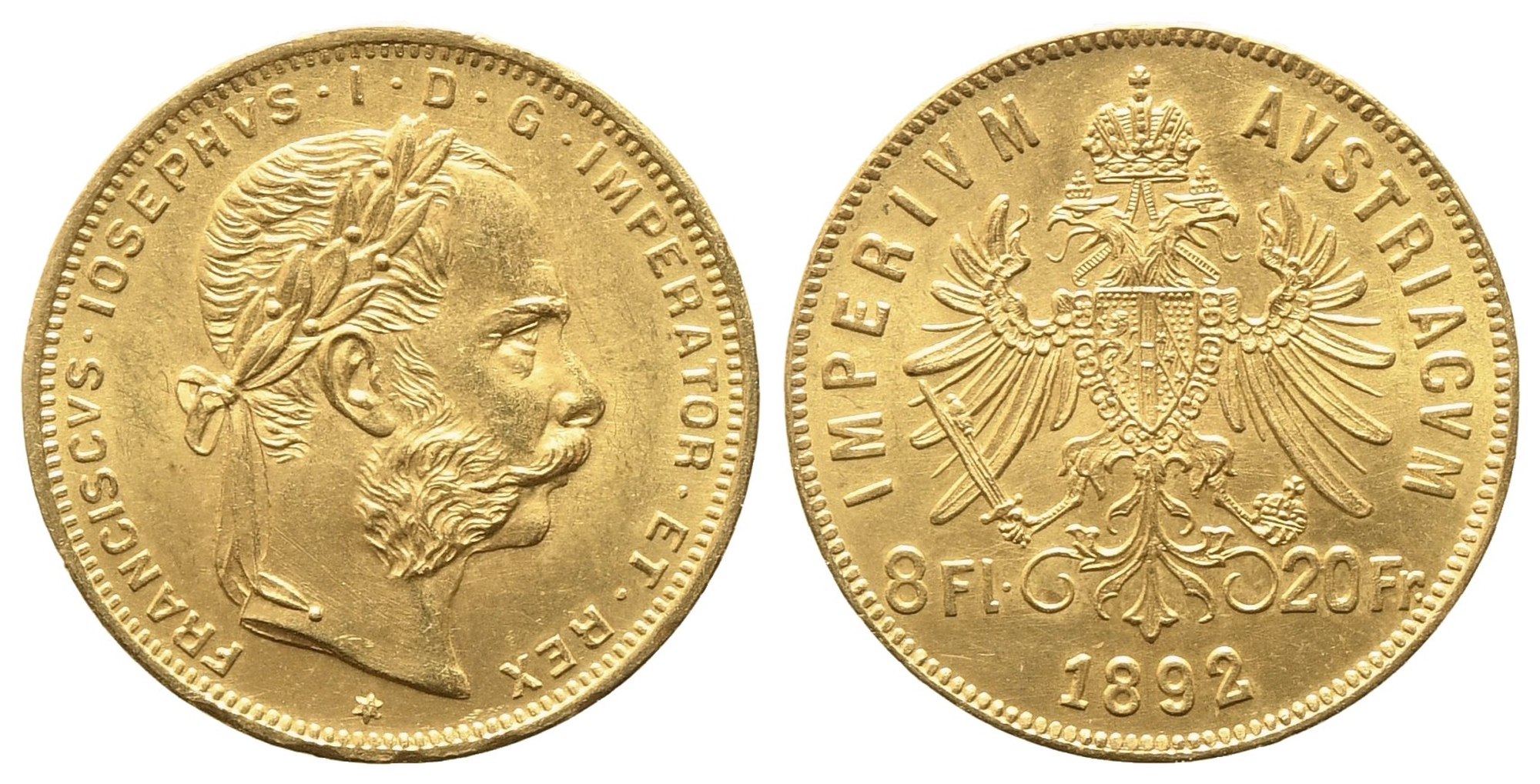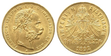 AUSTRIA. Francesco Giuseppe (1848-1916). 8 fiorini 1892. Au (6,45 g). SPL/FDC
