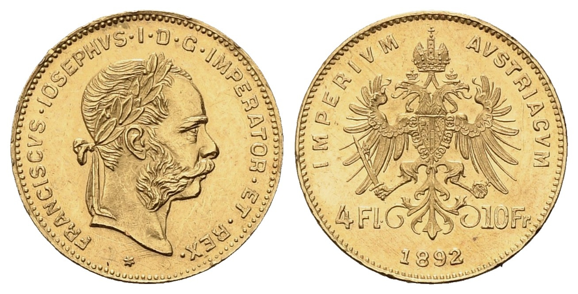 Lotto 28 | AUSTRIA. Francesco Giuseppe (1848-1816). 4 fiorini - 10 corone 1892. Au...
