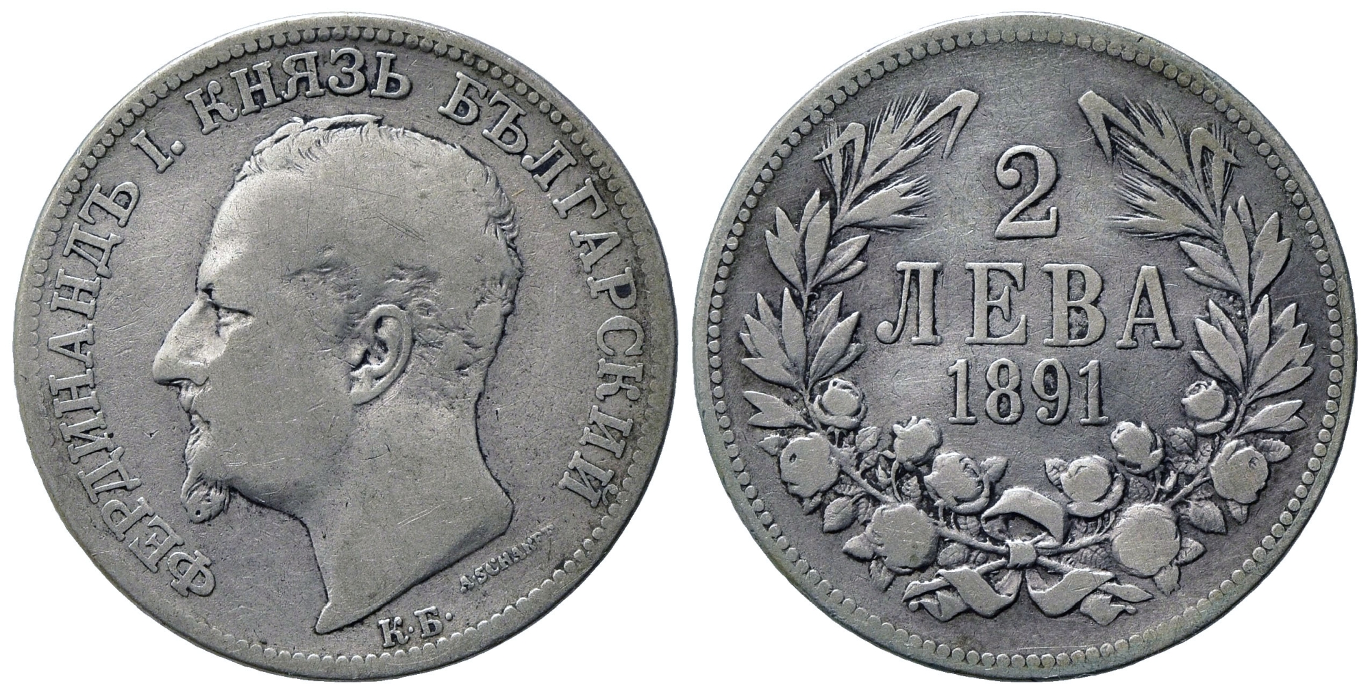 BULGARIA. Ferdinando I (1887-1918). 2 Leva 1891. Ag (26,5mm – 9,76 g). Kremnitz. KM#14. qBB