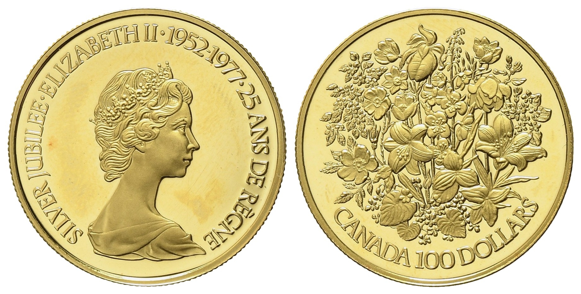 CANADA. 100 dollari 1977. 25 anniversario dell'incoronazione di Elisabetta II...