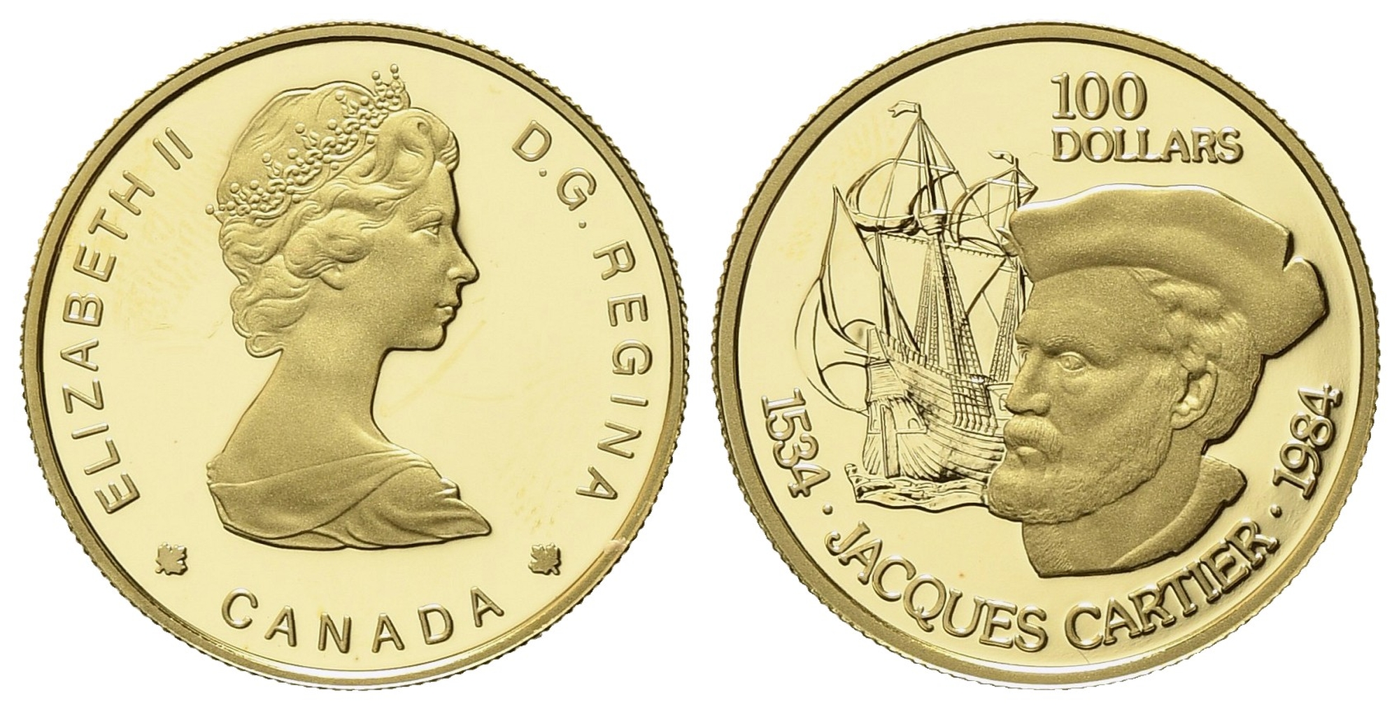 CANADA. 100 dollari 1984. Jacques Cartier 1534-1984. Au titolo 917 (16,97 g). 1/2 oncia in oro puro (15,55 g). PROOF