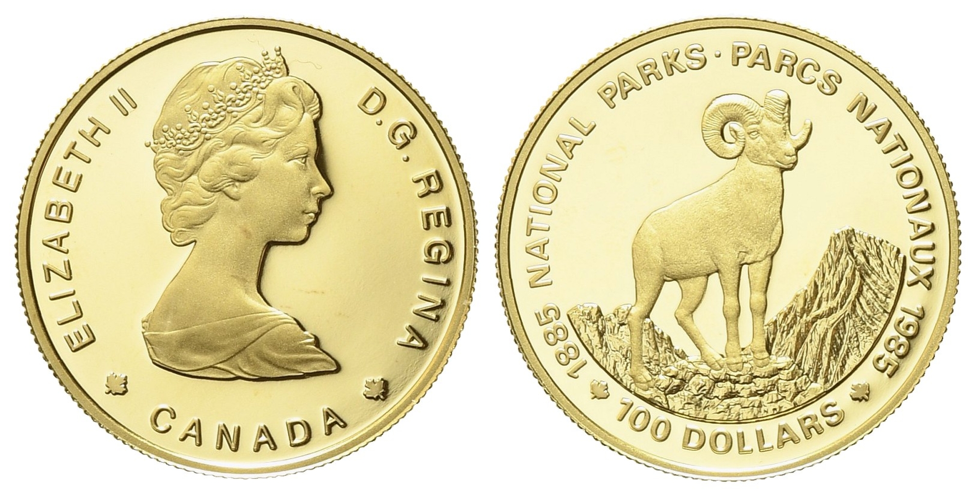 CANADA. 100 dollari 1985. Parchi nazionali. Au titolo 917 (16,97 g). 1/2...
