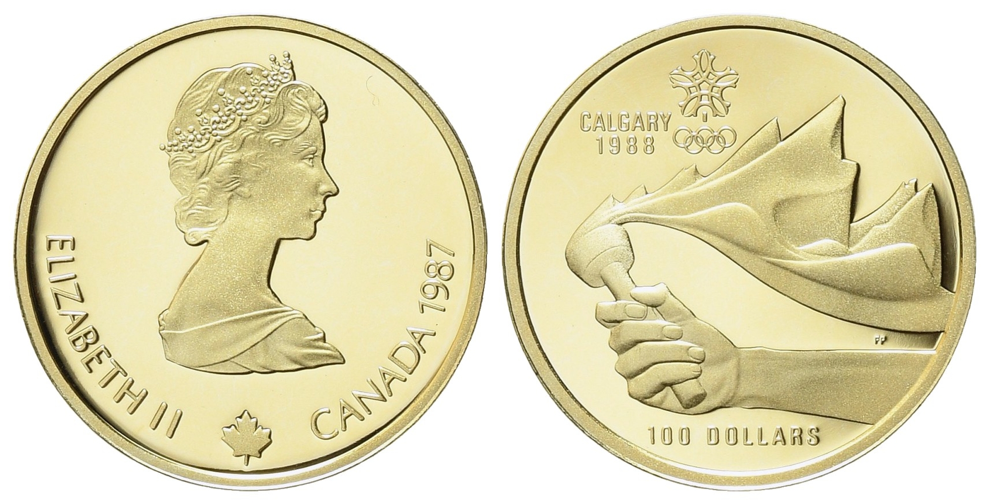 CANADA. 100 dollari 1988. Olimpiadi di Calgary. Au titolo 583 (13,34 g). 1/4...