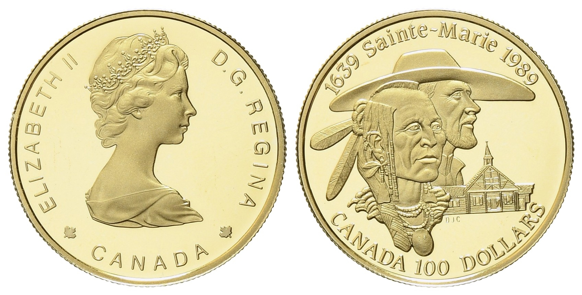 Lotto 58 | CANADA. 100 dollari 1989. Sainte Marie 1639-1989. Au titolo 583 (13,34 g)....
