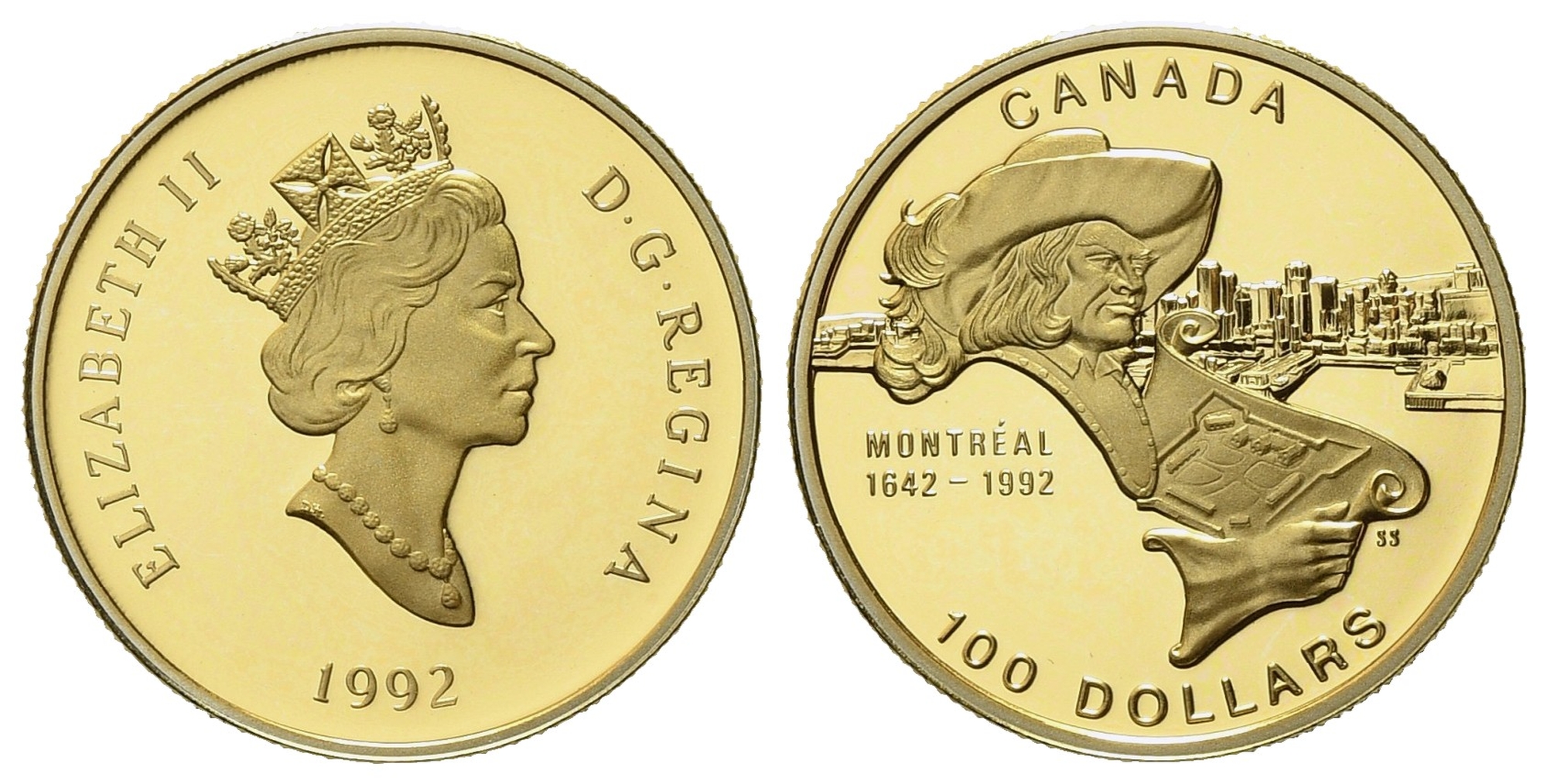 CANADA. 100 dollari 1992. Montreal 1642-1992. Au. titolo 583 (13,34 g). 1/4...