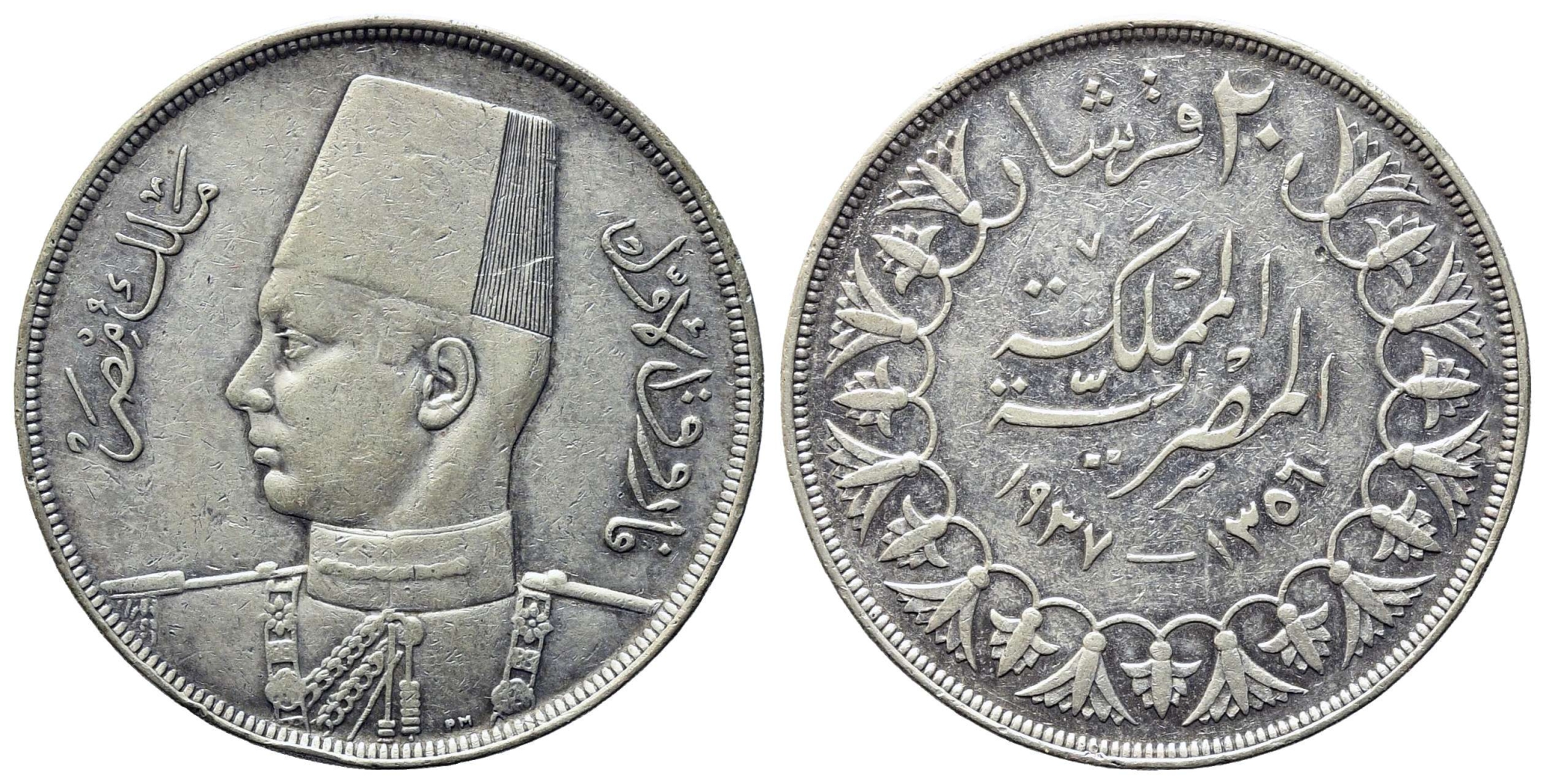 EGITTO. Farouk I (1936-1952). 20 Piastre 1356 AH (1937). Ag (27,99 g). SPL
