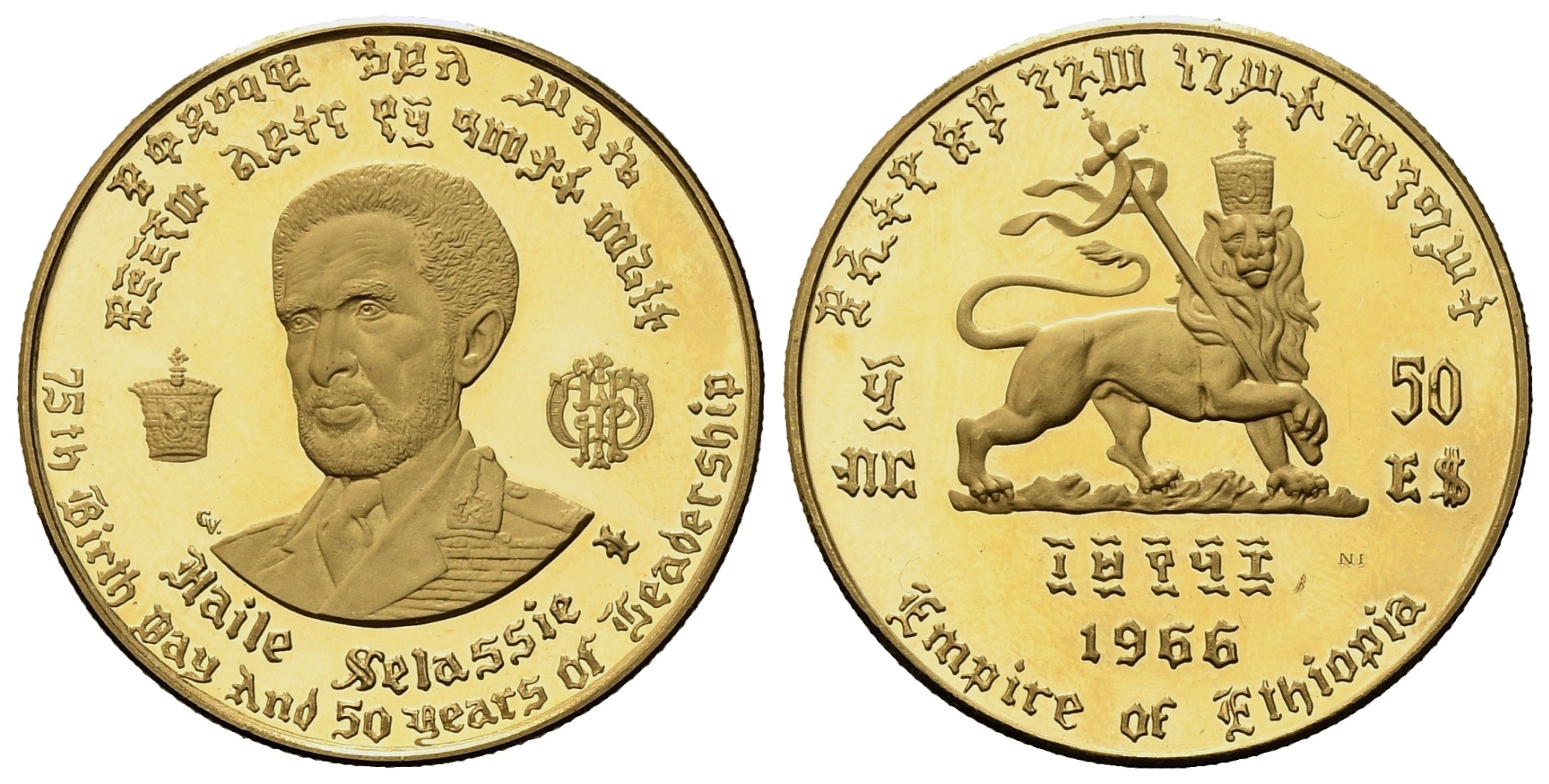 ETIOPIA. Hailé Selassié. 50 dollari, 75th birthday and 50 years of leadership. 1966. Au (20,16 g). PROOF