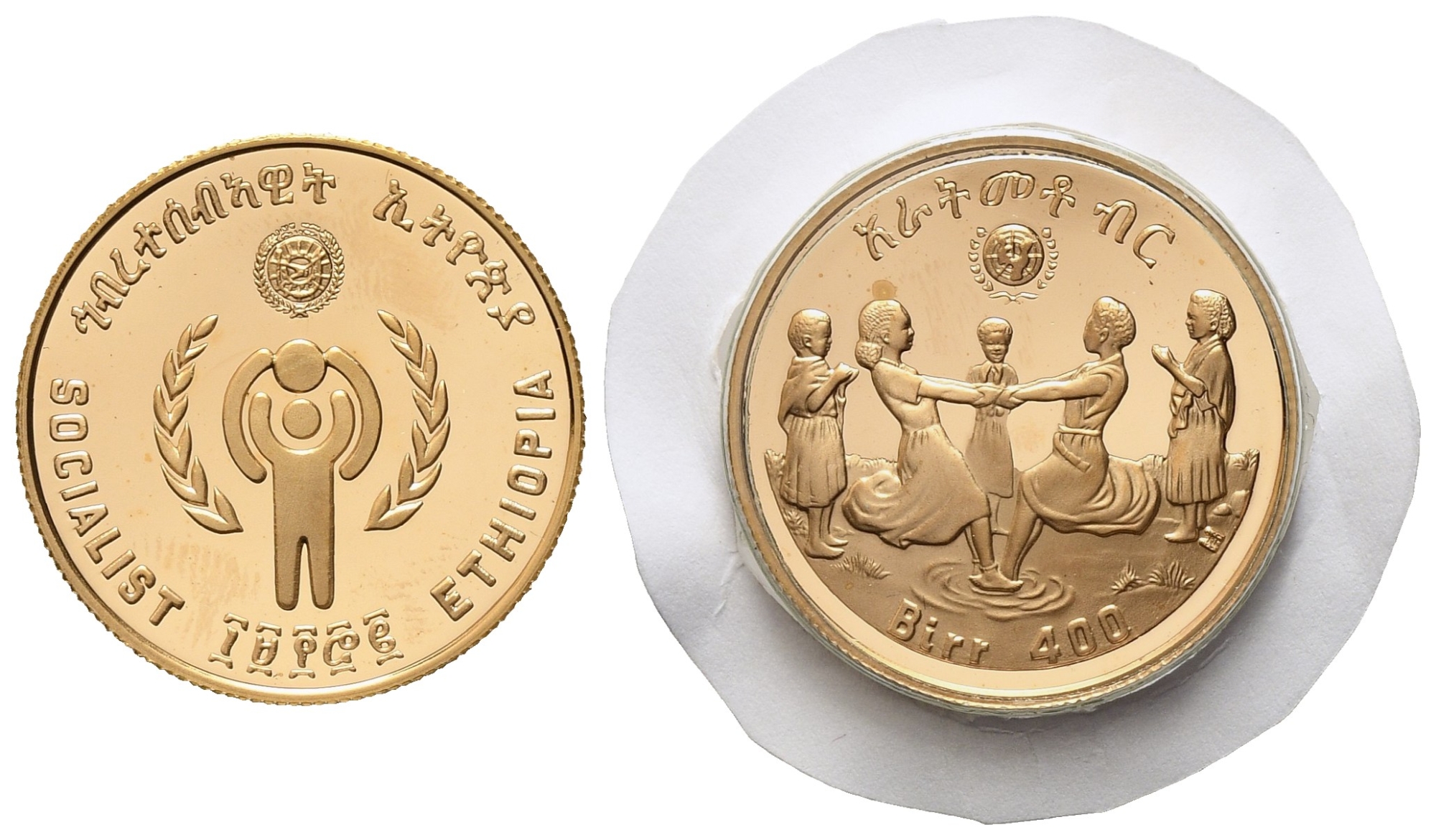 ETIOPIA. 400 birr 1980. Anno internazionale del bambino. Au titolo 900 (17,17 g). 1/2 oncia in oro puro. R. PROOF