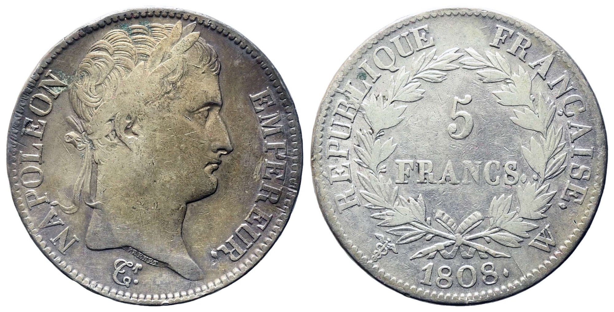 FRANCIA. Napoleone I (1804-1814). 5 franchi 1808. Lille. Ag. qBB