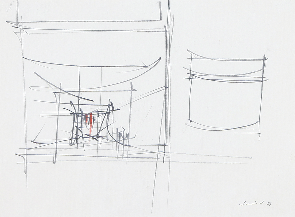EMILIO SCANAVINO Genova 28/02/1922 - Milano 29/11/1986 Senza titolo, 1959 matita e pastello su carta cm. 24x33, firma e anno in basso a destra, dichiarazione d'autenticità della moglie Giorgina Graglia Scanavino su foto.