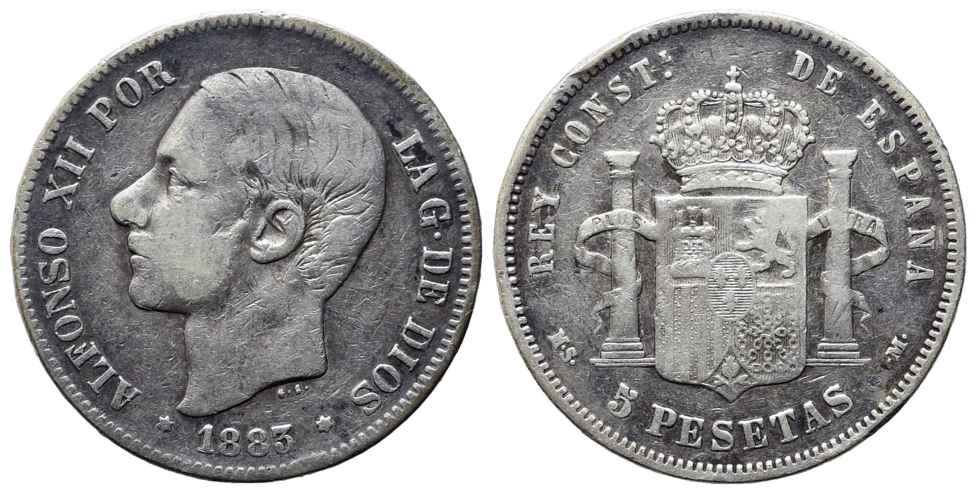 SPAGNA. Alfonso XII (1874-1885). 5 pesetas 1883. Ag. qBB