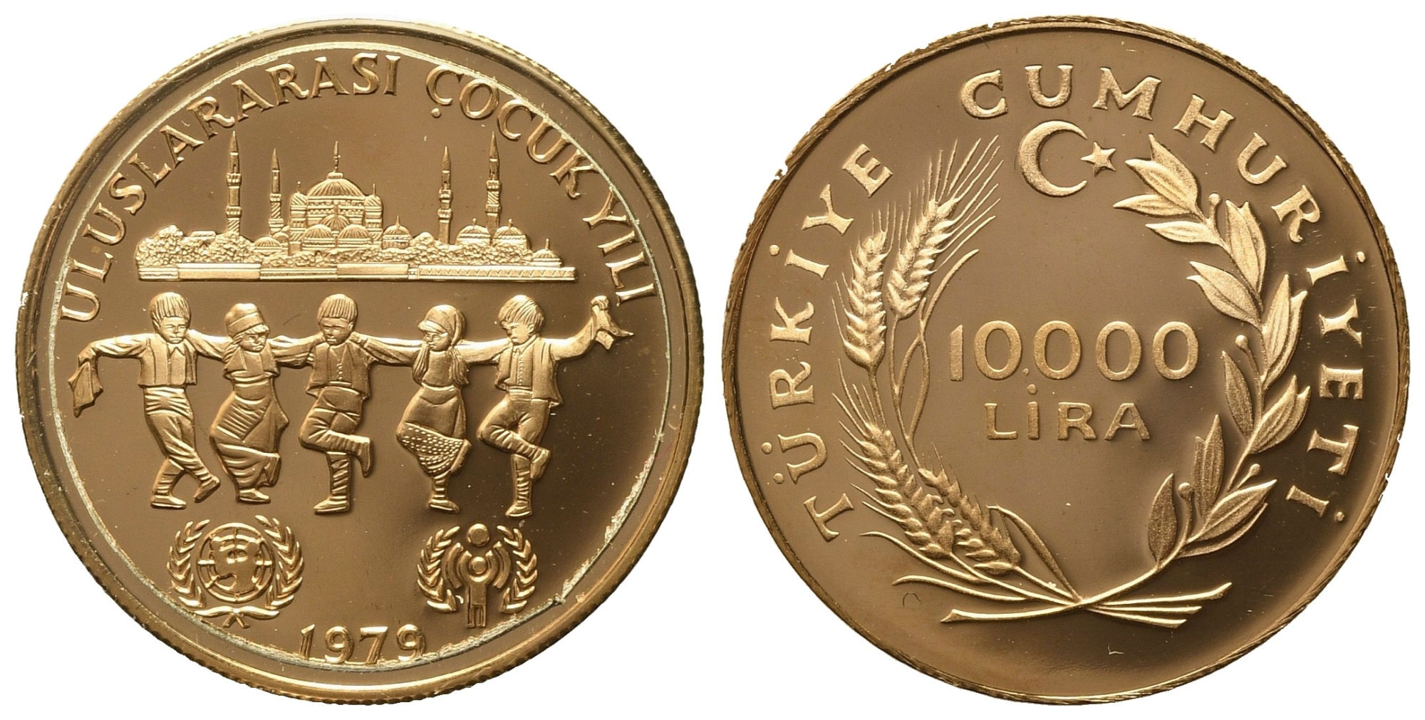 TURCHIA. 10000 lire 1979. Anno internazionale del bambino. Au titolo 900 (17,17 g). 1/2 oncia in oro puro. PROOF