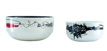 EMILIO SCANAVINO Genova 28/02/1922 - Milano 29/11/1986 Senza titolo vaso in ceramica policroma diametro cm. 17, altezza cm. 8, esemplare 47/50, firma sotto la base. Senza titolo vaso in ceramica policroma diametro cm. 13,5; altezza cm. 6,5; esemplare 46/50, firma sotto la base.
