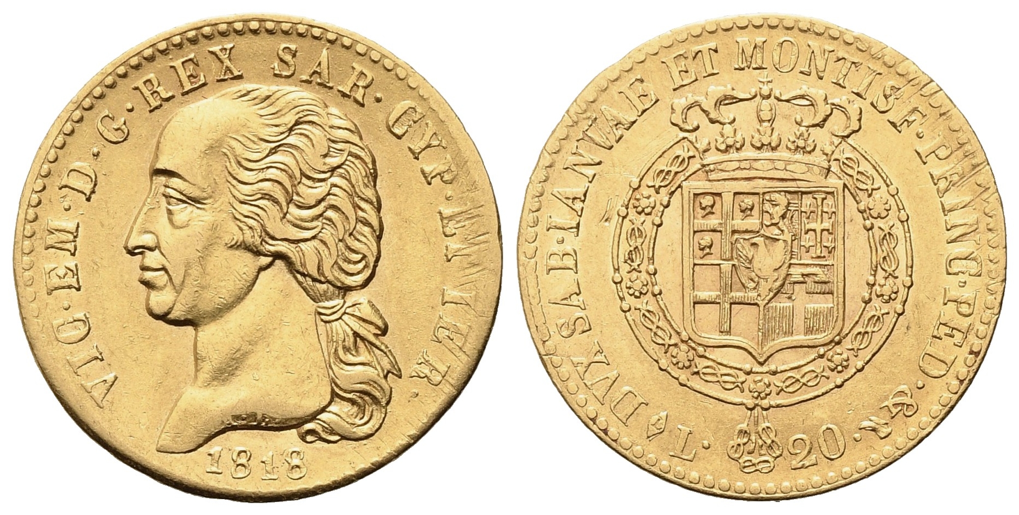 Lotto 711 | REGNO DI SARDEGNA. Vittorio Emanuele I (1802-1821). 20 lire 1818. Torino. Au...