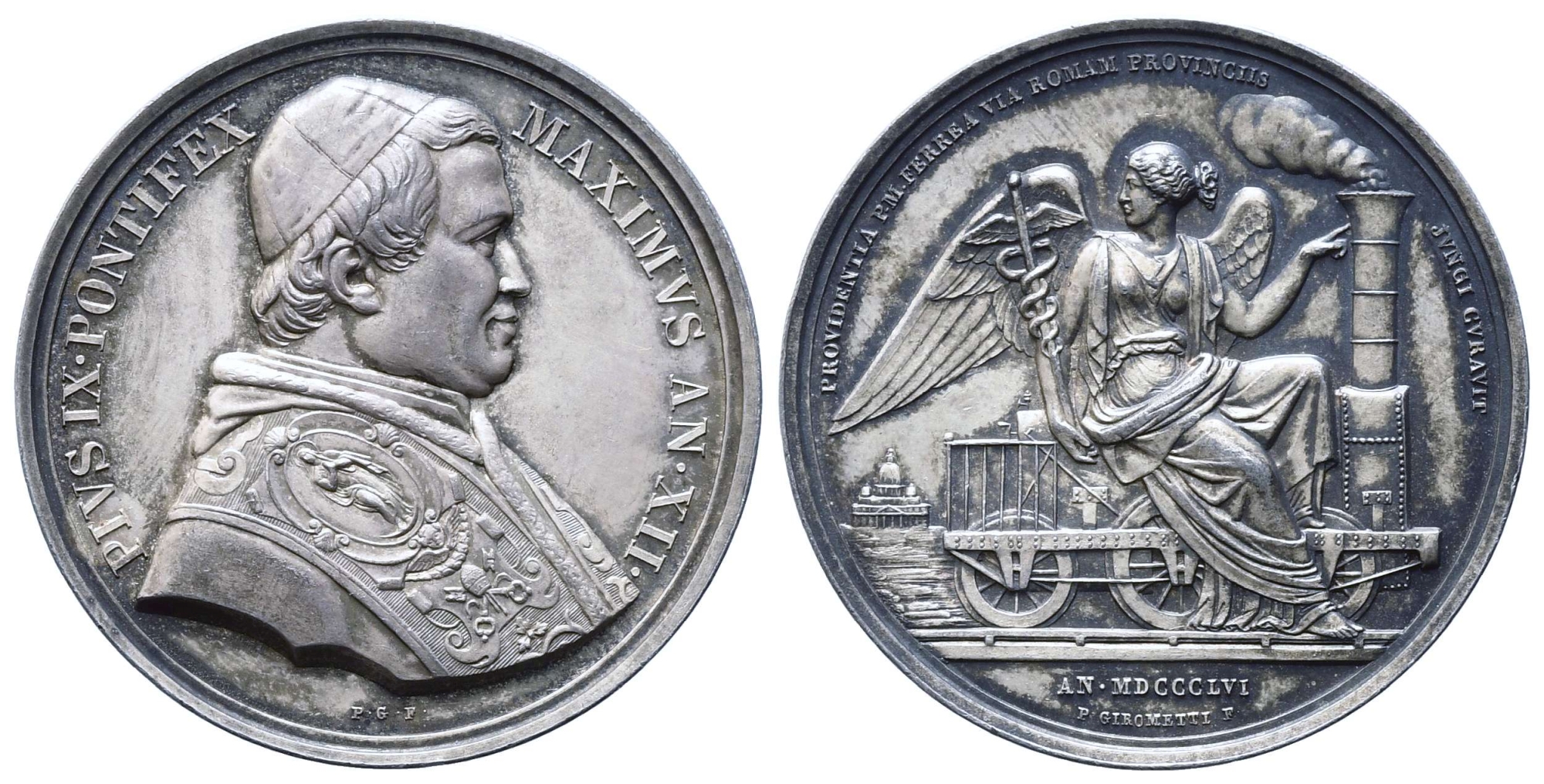 CITTA' DEL VATICANO. Stato Pontificio. Pio IX (1846-1878). Medaglia annuale 1857, anno XII. Per la prima ferrovia ponticia Roma-Frascati. Opus Pietro Girometti. Ag (43,5 mm). R. FDC.